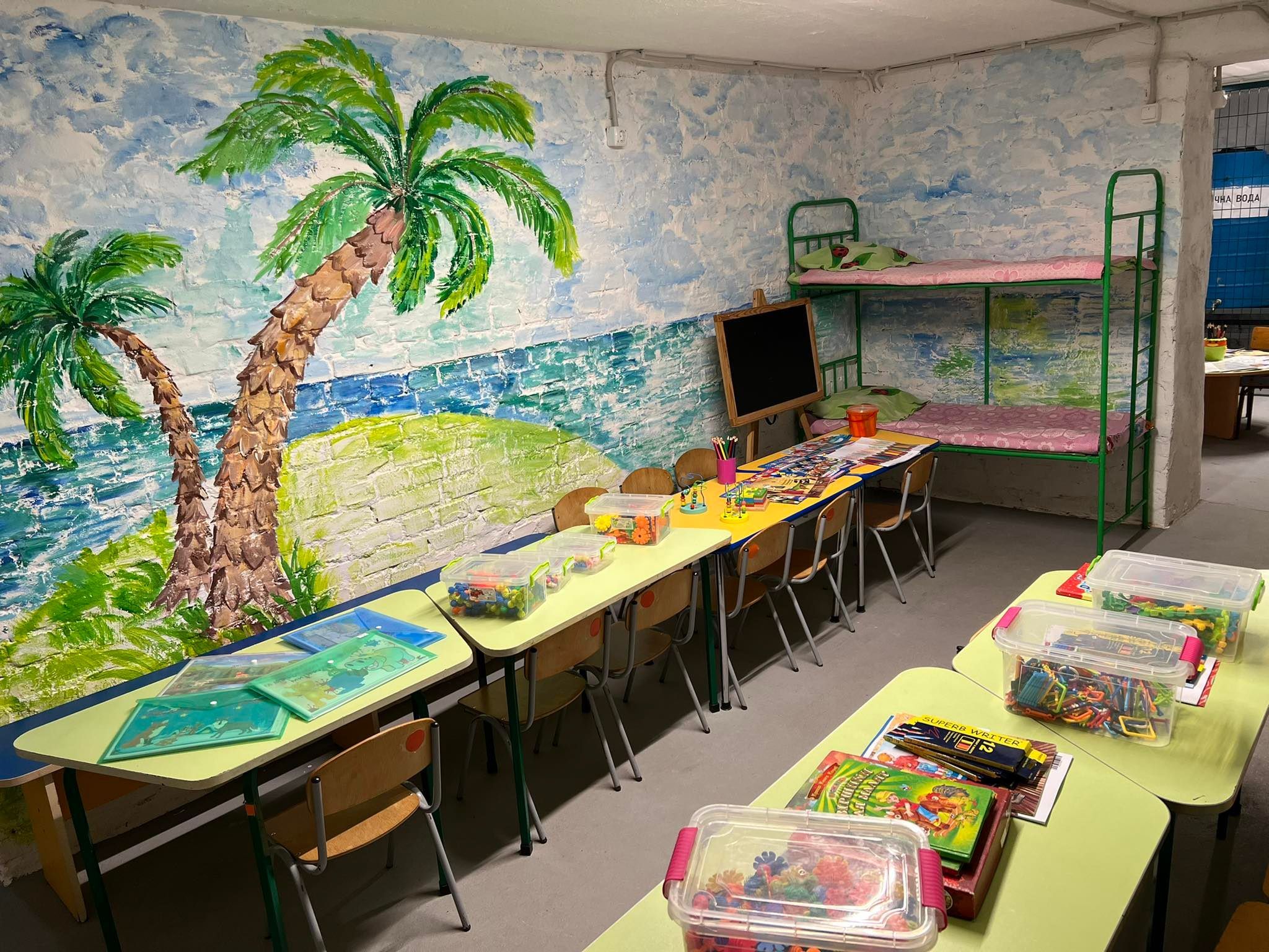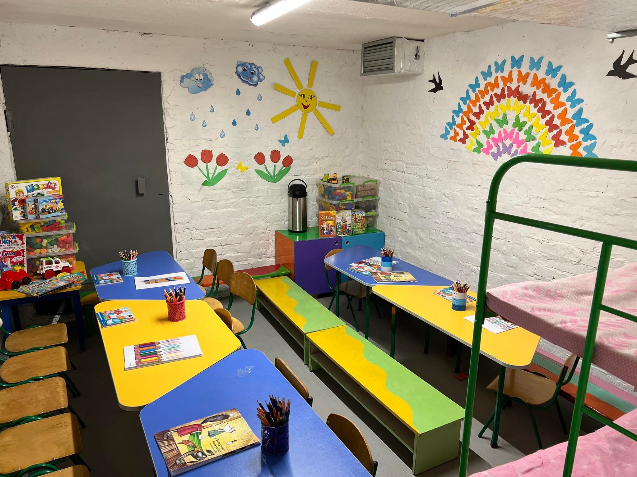 Для зручності працівники садочку розмістили в укритті ліжечка та інші меблі, розділили простір на ігрові зони з іграшками та матеріалами для творчої роботи, а також розмалювали стіни казковими героями, аби створити відповідний емоційний настрій малечі.