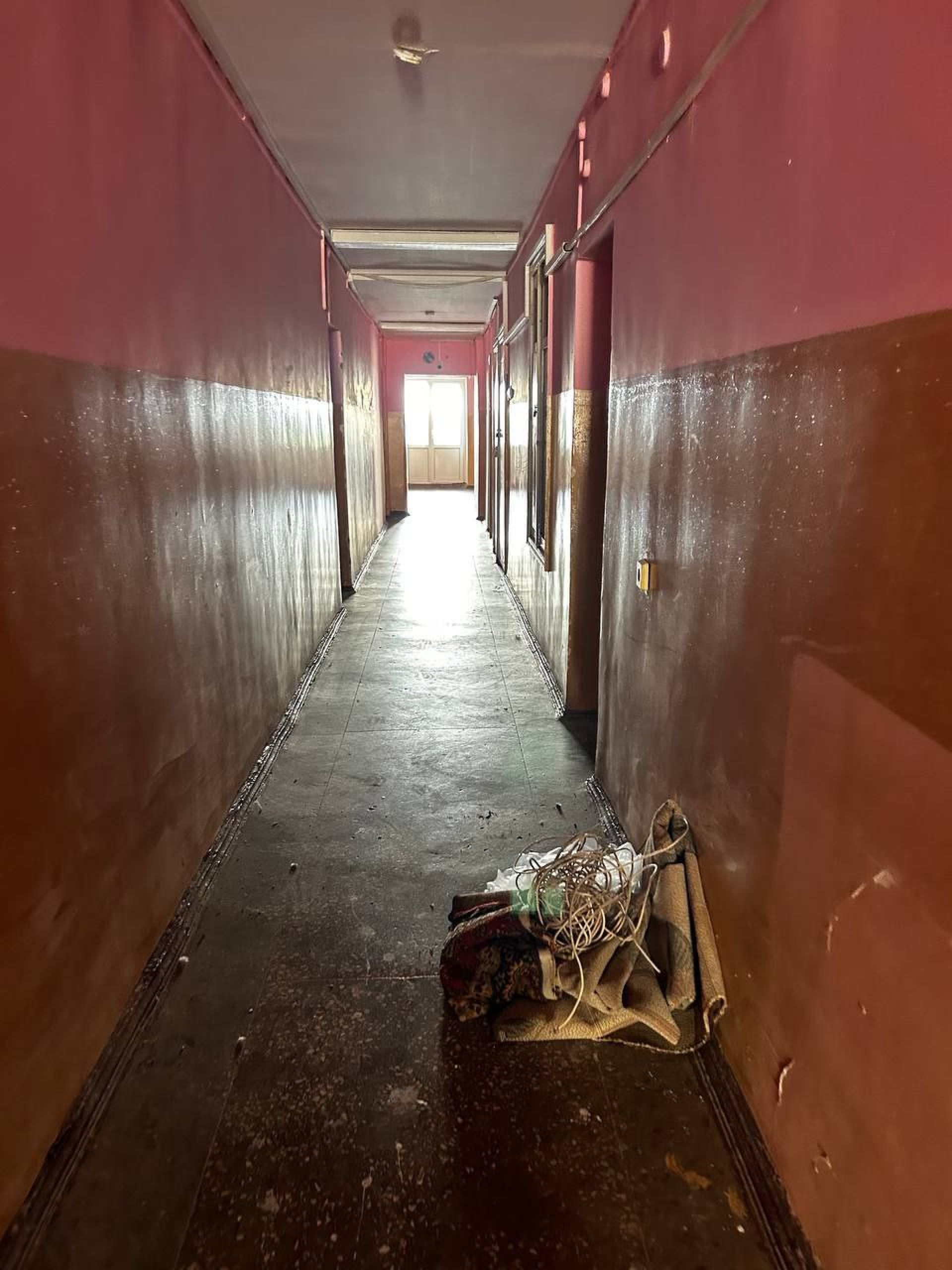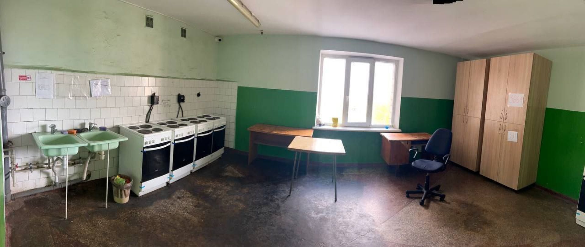 - Будівельні роботи: ремонт покрівлі, оновлення санвузлів (штукатурення, обшивка плитами ОСБ), фарбування приміщень у кількох гуртожитках.
