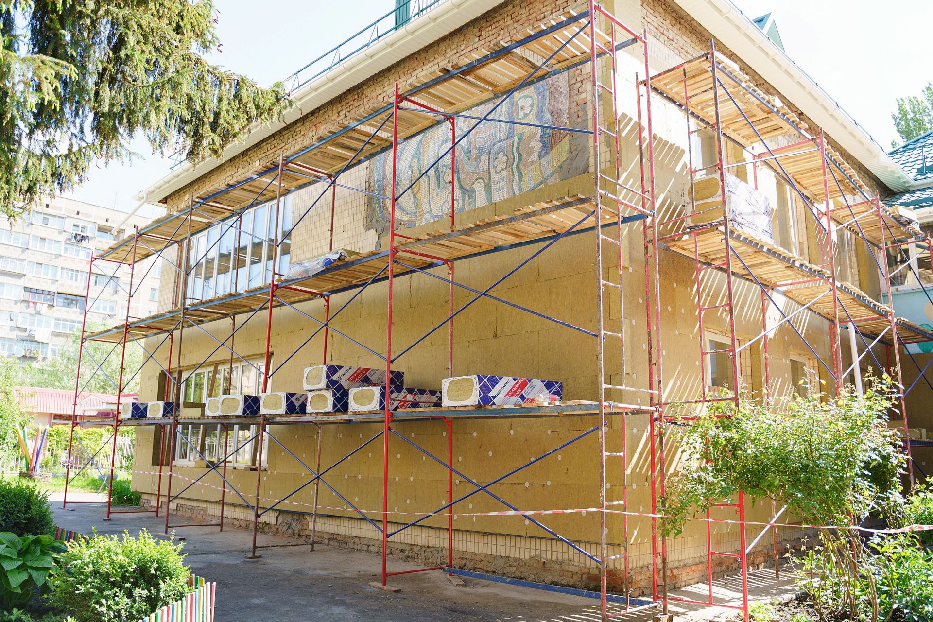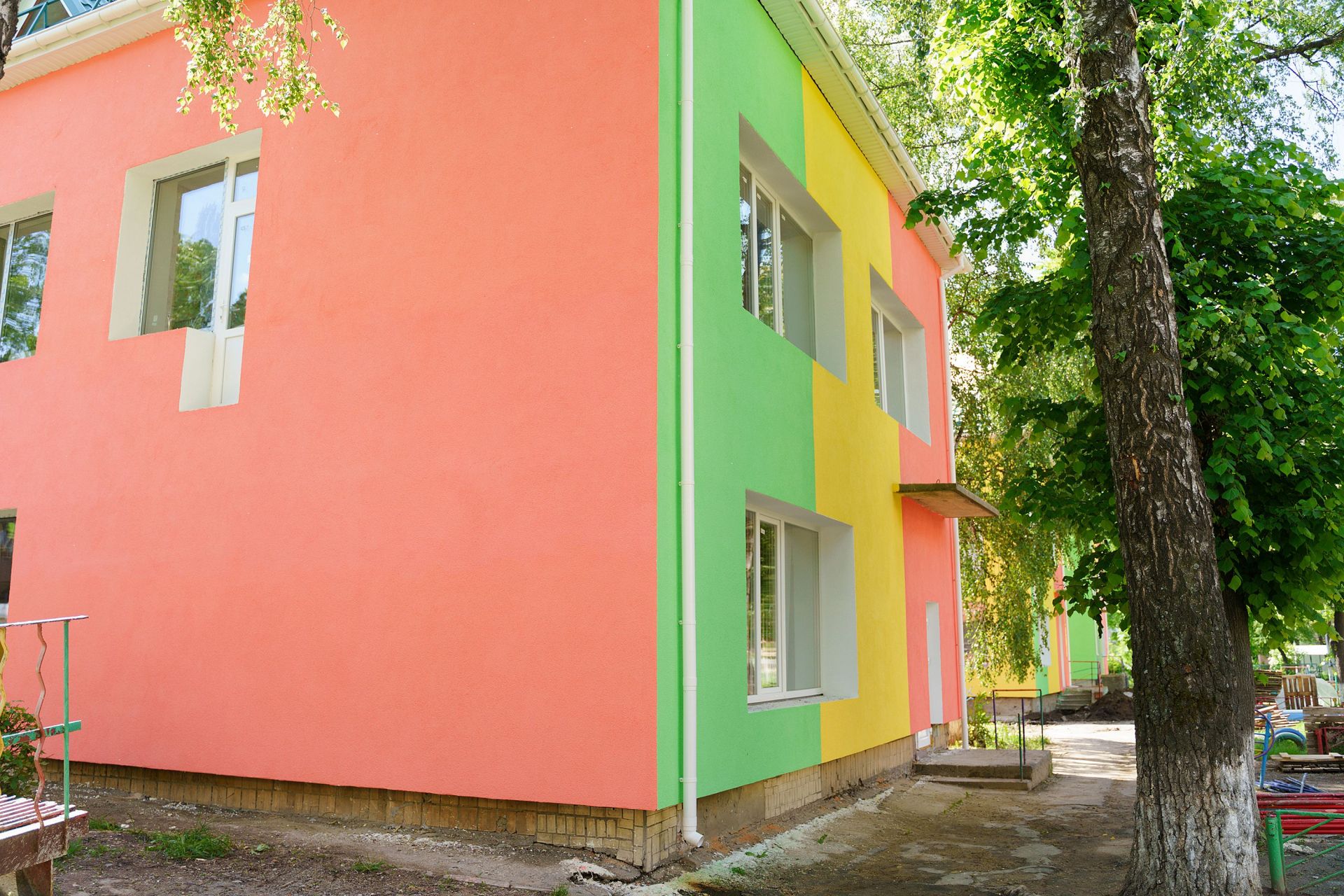 Садочок «Веселка» відвідує 535 дітей. Там зараз робітники утеплюють фасад та цоколь будівлі, влаштовують вікна, які мають протипожежну функцію. Також виконується влаштування відкосів, штукатурення фасаду будівлі тощо.