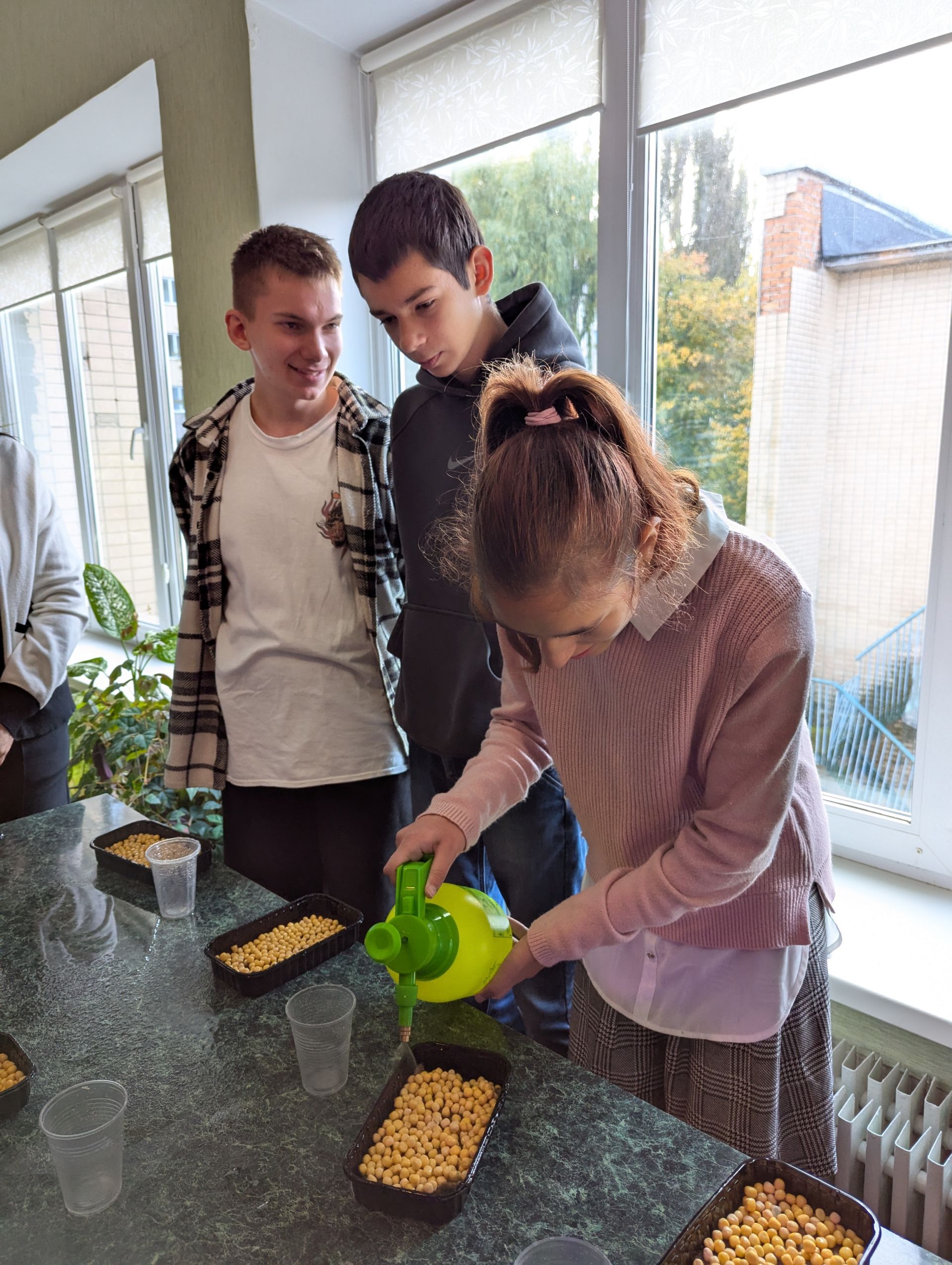 У кабінеті під спеціальними фітолампами ростуть амарант, горох, редька, цибуля та червона капуста. Школярі власноруч сіють зернятка, поливають їх і спостерігають за ростом, радіючи кожному паростку.