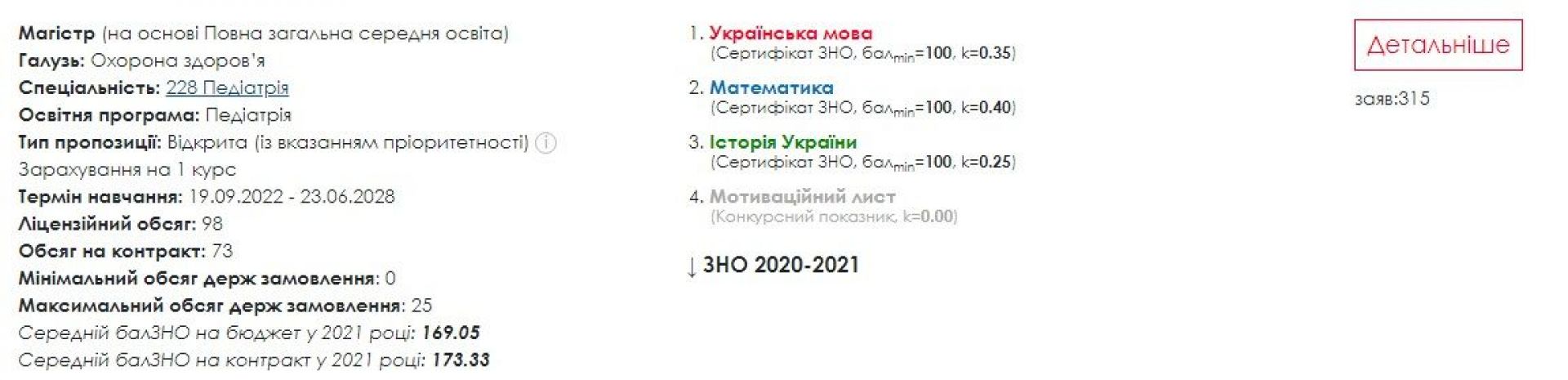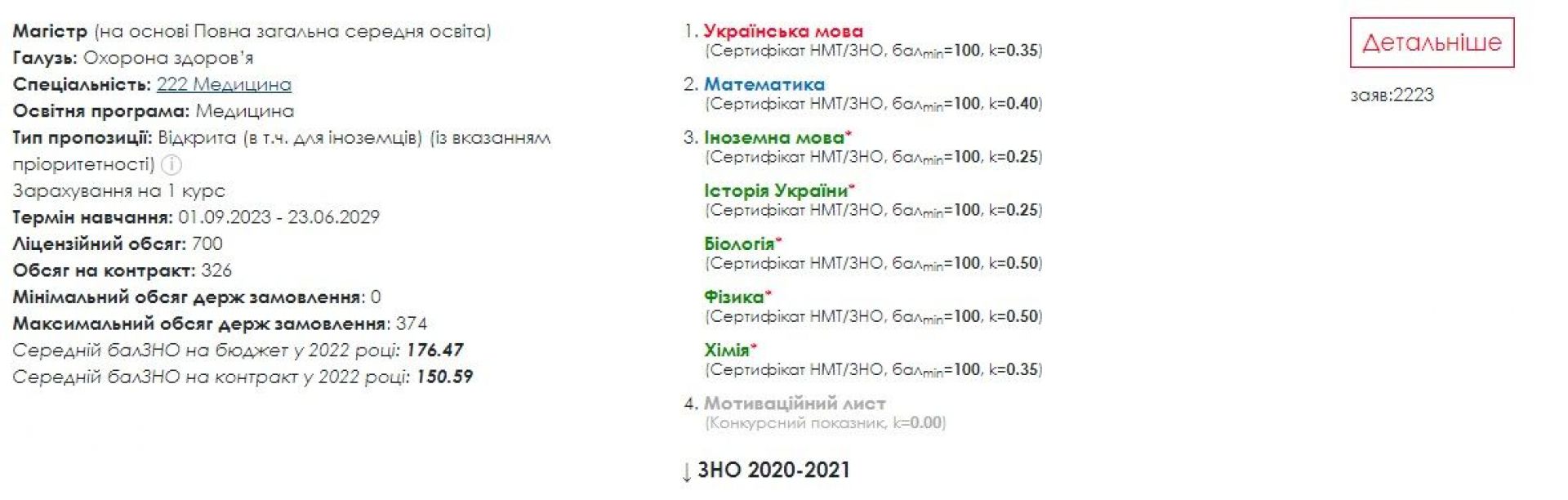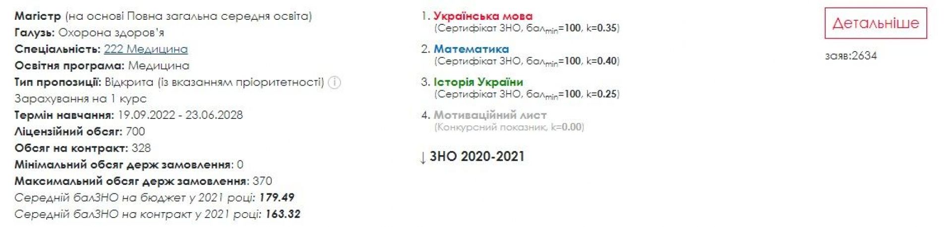 Далі дивимося заявки у Вінницький національний медичний університет імені М.І. Пирогова.
