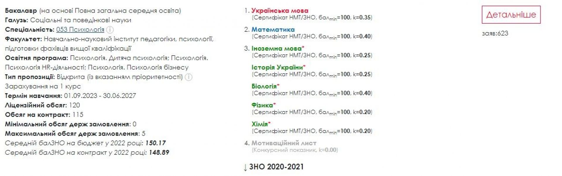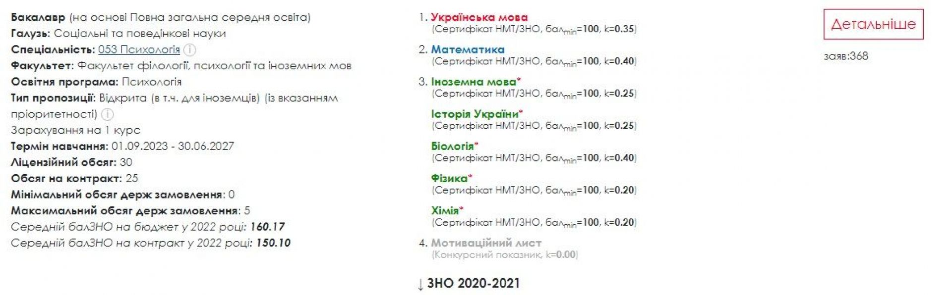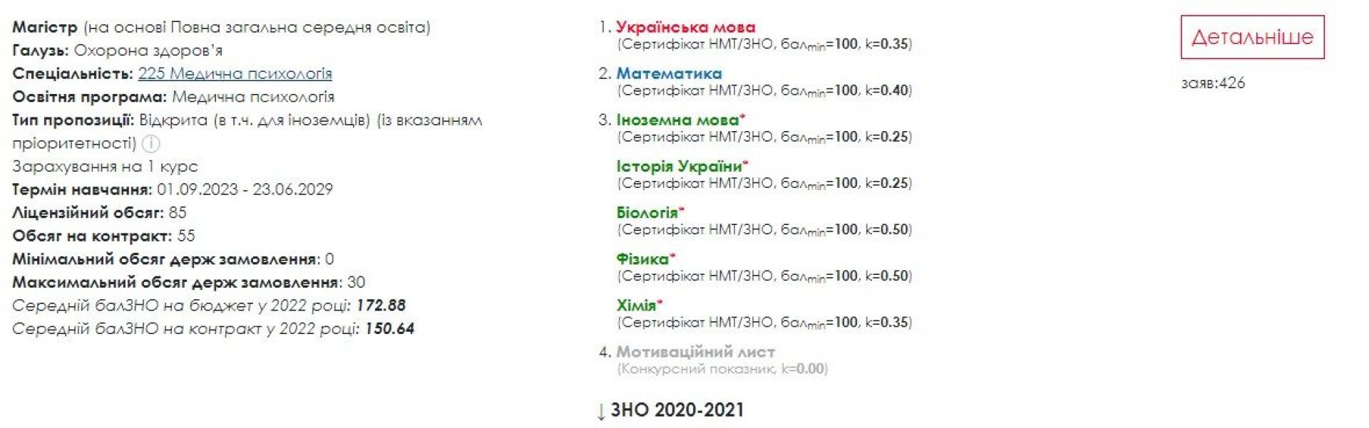Далі дивимося заявки у Вінницький національний медичний університет імені М.І. Пирогова.