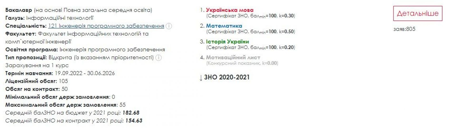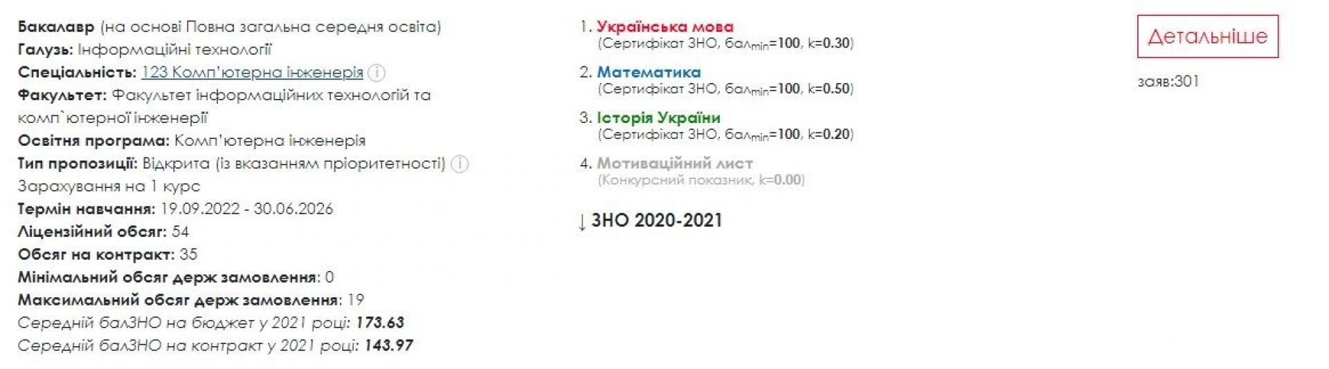Минулого року перші дві спеціальності були на тих самих місцях, але кількість заяв на «Інженерію програмного забезпечення» була 805, а на «Комп'ютерні науки» ― 756. Єдине суттєва відмінність те, що спеціальність «Комп’ютерна інженерія» торік посіла третє місце, туди подали 301 заяву.