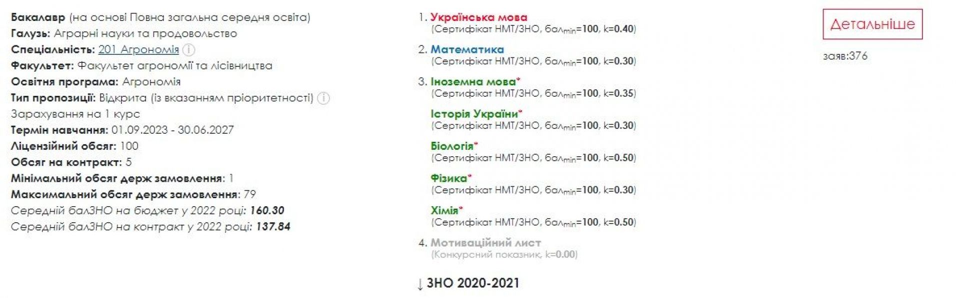 Цьогоріч багато майбутніх студентів подали свої заяви на «Право» ― 424, «Агрономію» ― 376 та «Менеджмент» ― 325.
