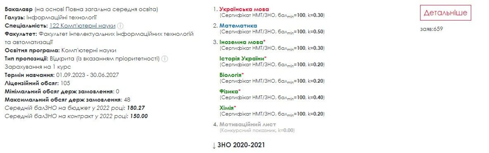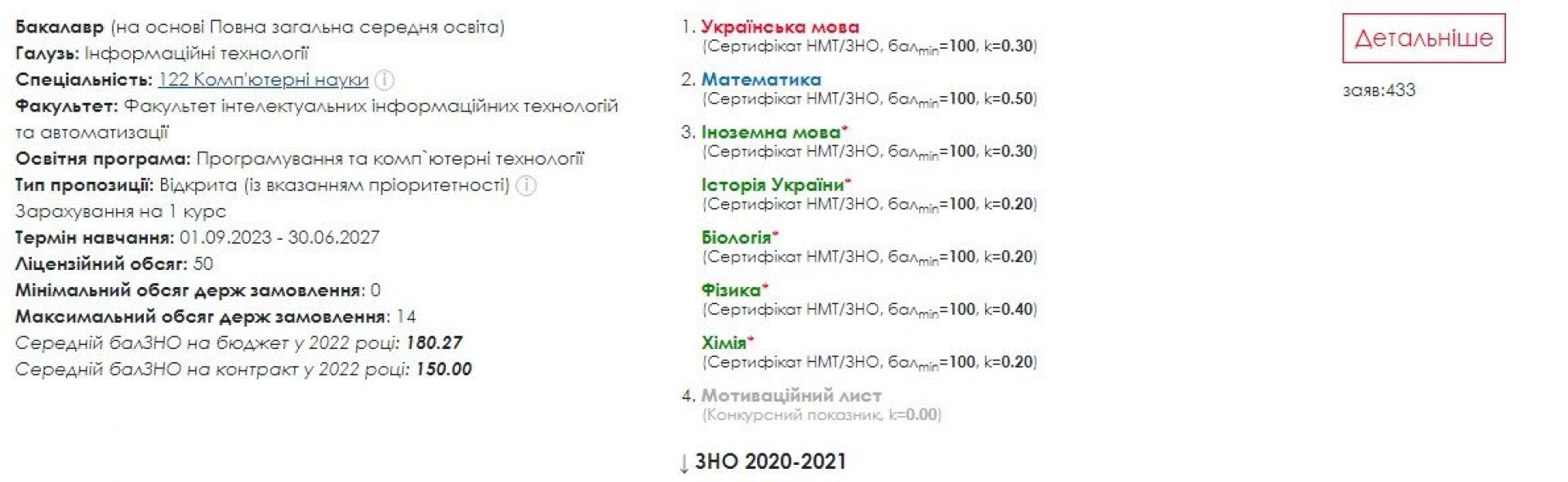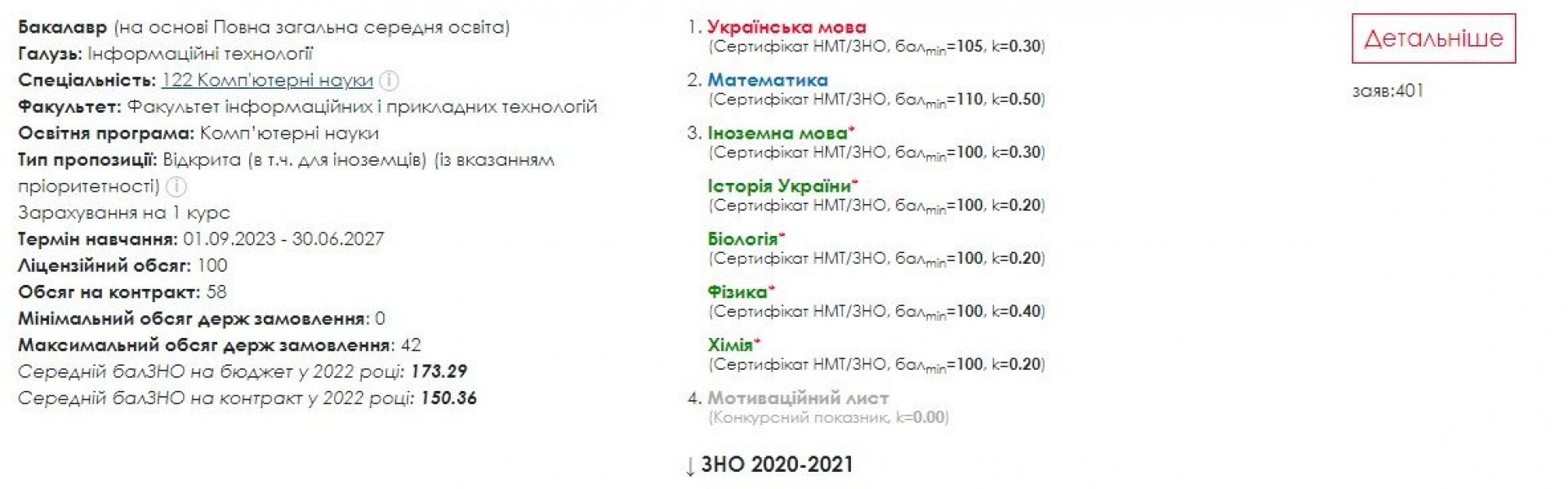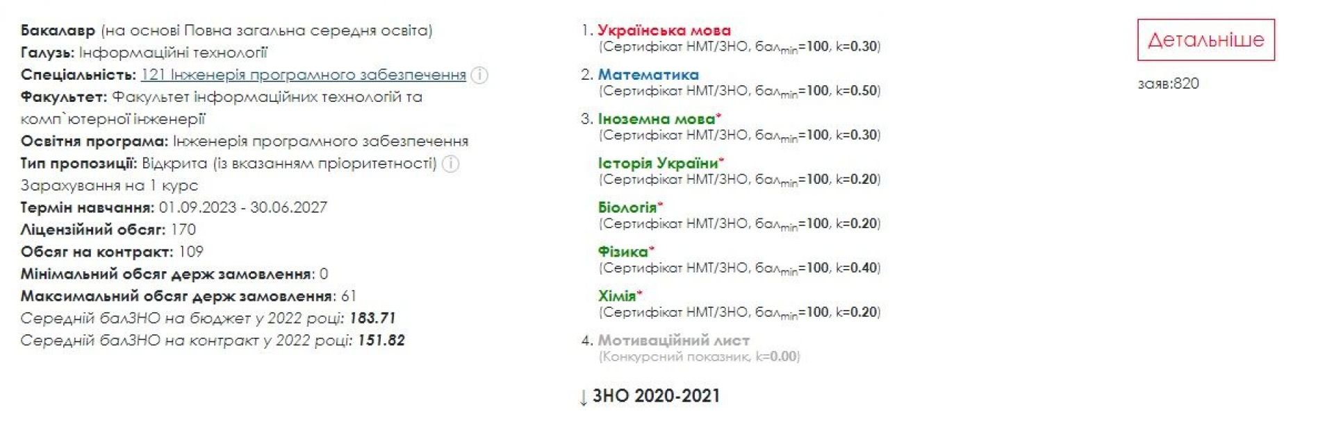 Цьогоріч найбільше заявок подали на «Інженерія програмного забезпечення» ― 820 та на «Комп'ютерні науки» ― 659. Також в трійку потрапила спеціальність «Програмування та комп`ютерні технології» ― 433 заяви.