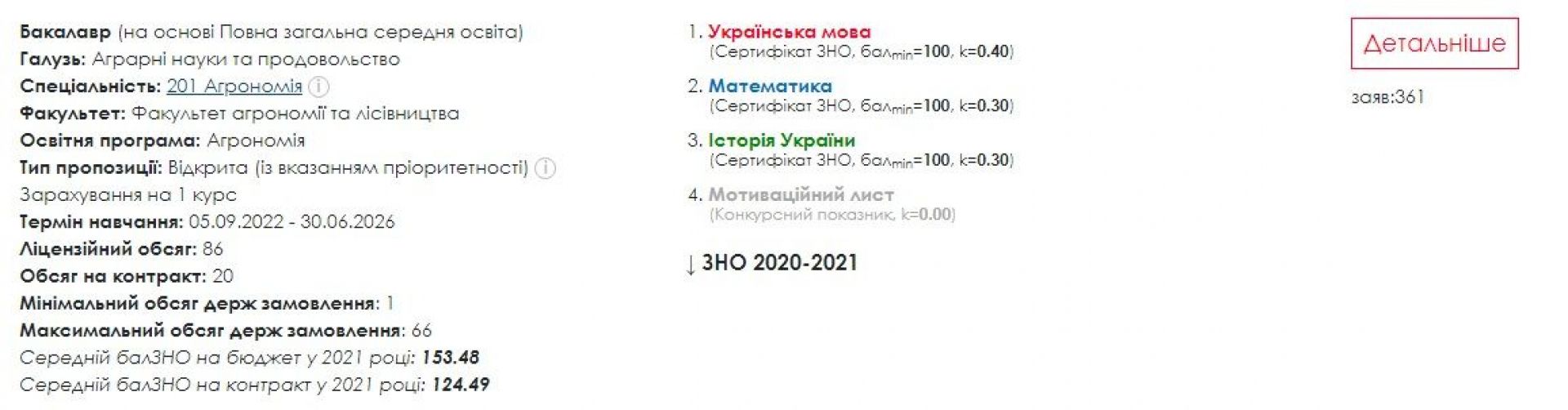 Минулого року в університеті найпопулярнішою спеціальністю була «Агрономія» ― 361, далі «Менеджмент» ― 284 і вже потім «Право» ― 259.