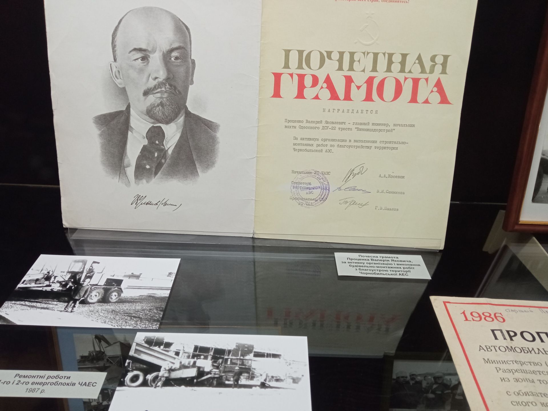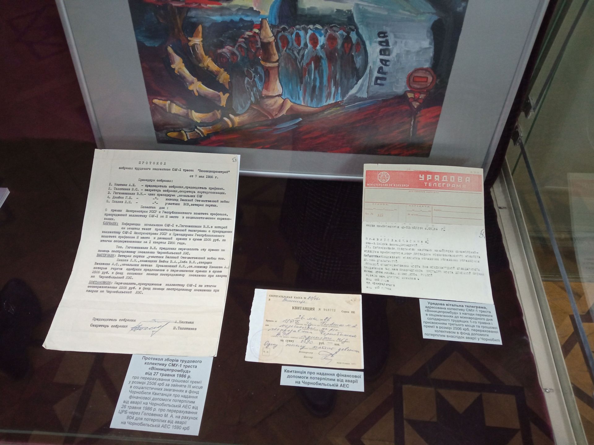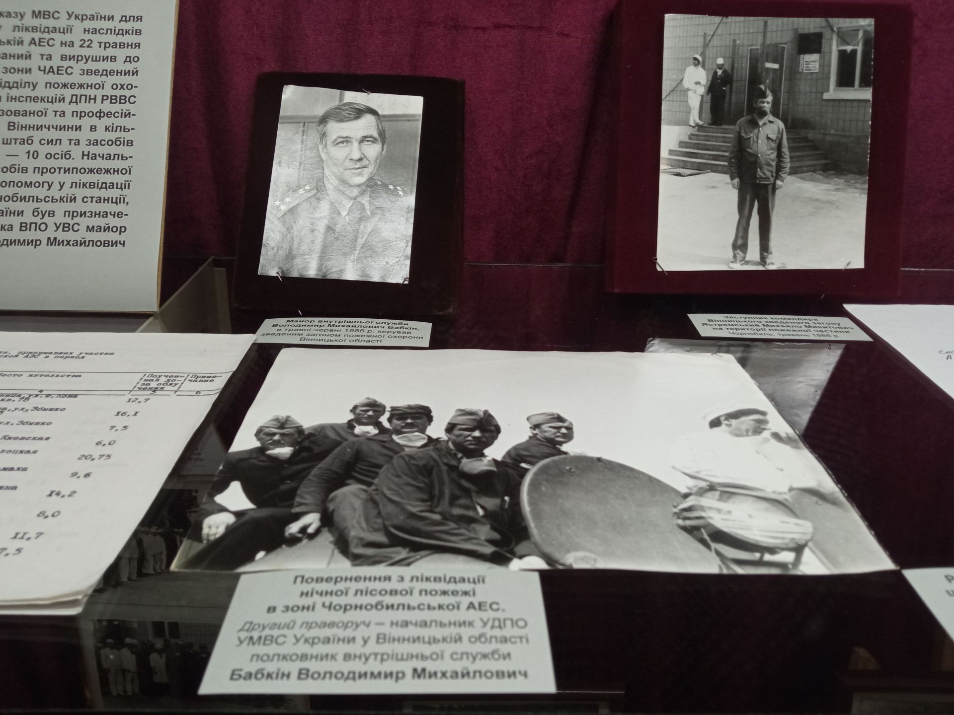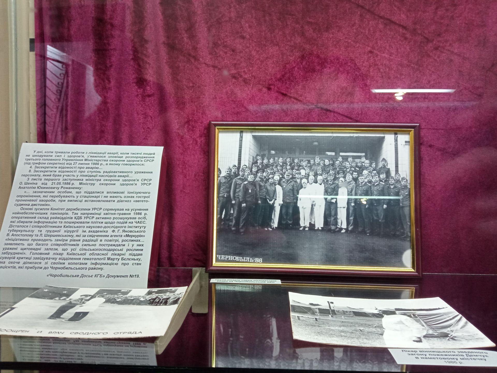 Додамо, що серед великої кількості матеріалів можна побачити й речі вже померлих ліквідаторів: Миколи Харченка, Валентина Стемпіня, Констянтина Сафронова, Валерія Струтинського й інших.