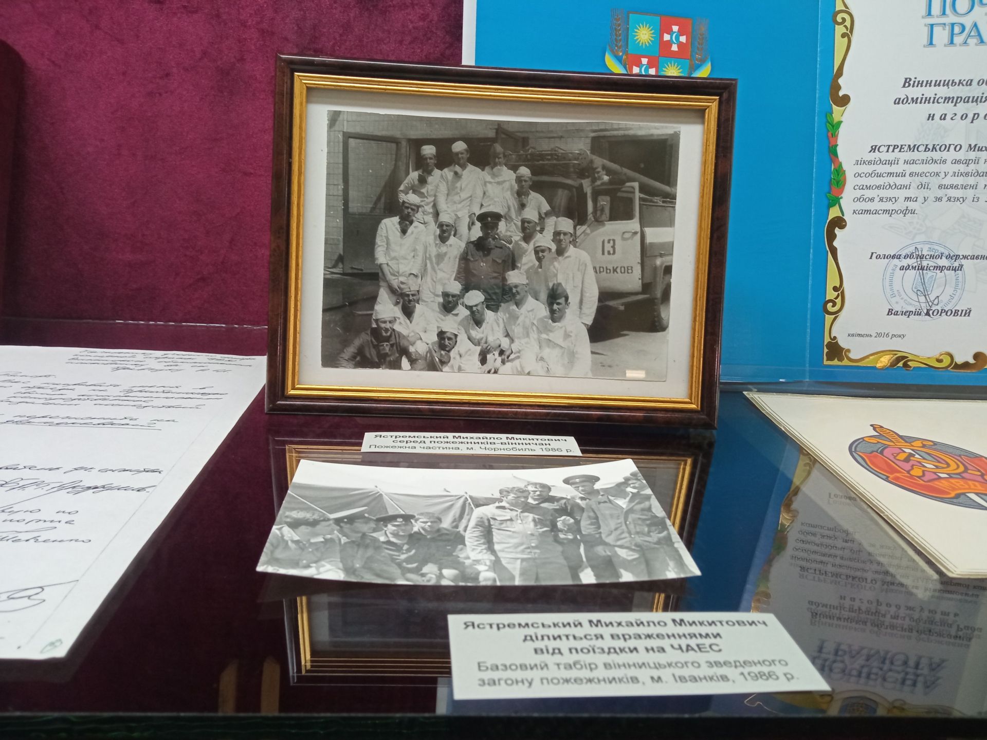 У малій виставковій залі краєзнавчого музею нова виставка. Її відкриття приурочили до річниці аварії на Чорнобильській АЕС і присвятили справжнім героям — вінницьким ліквідаторам, які безстрашно боролись із наслідками катастрофи.
