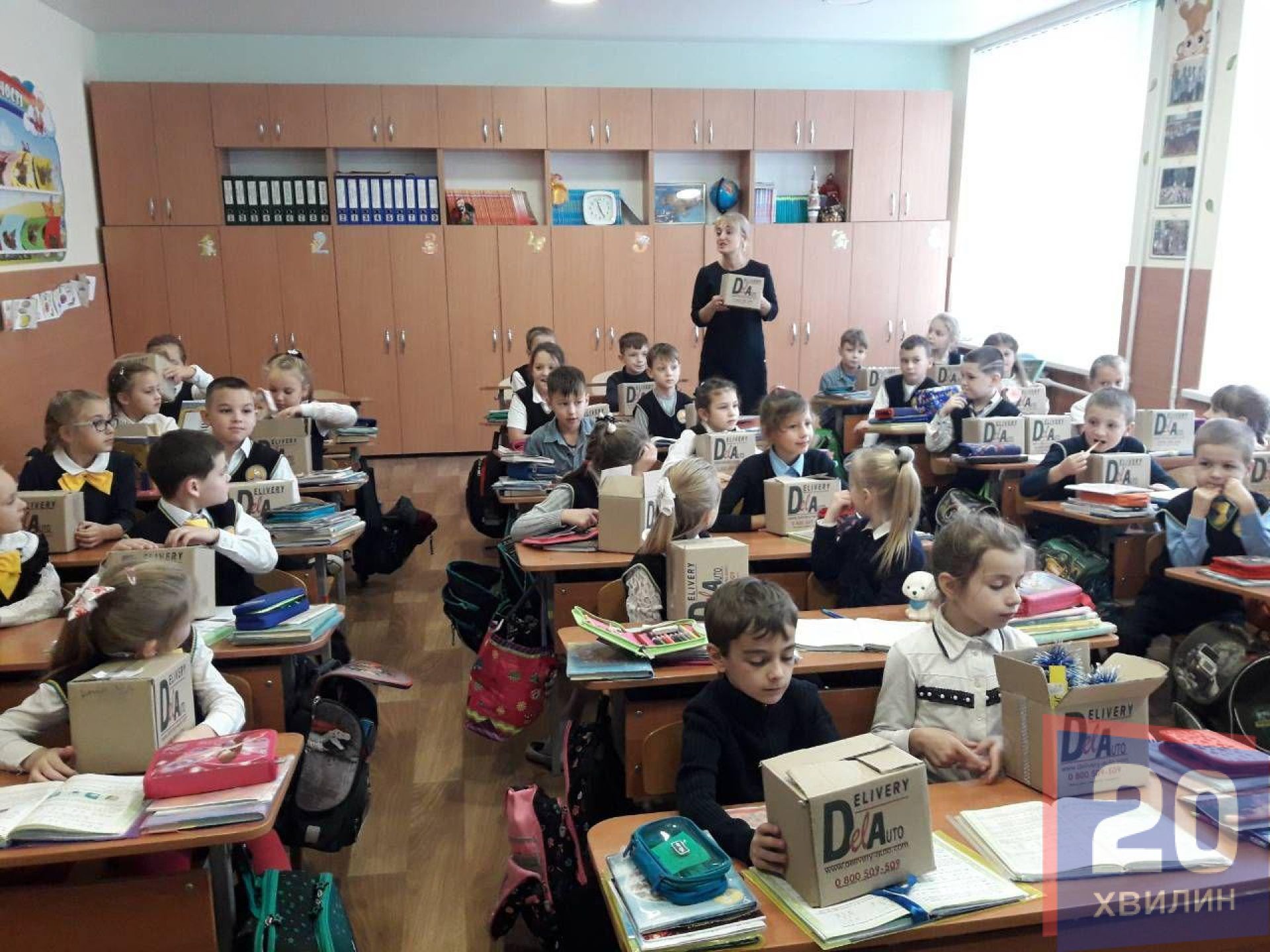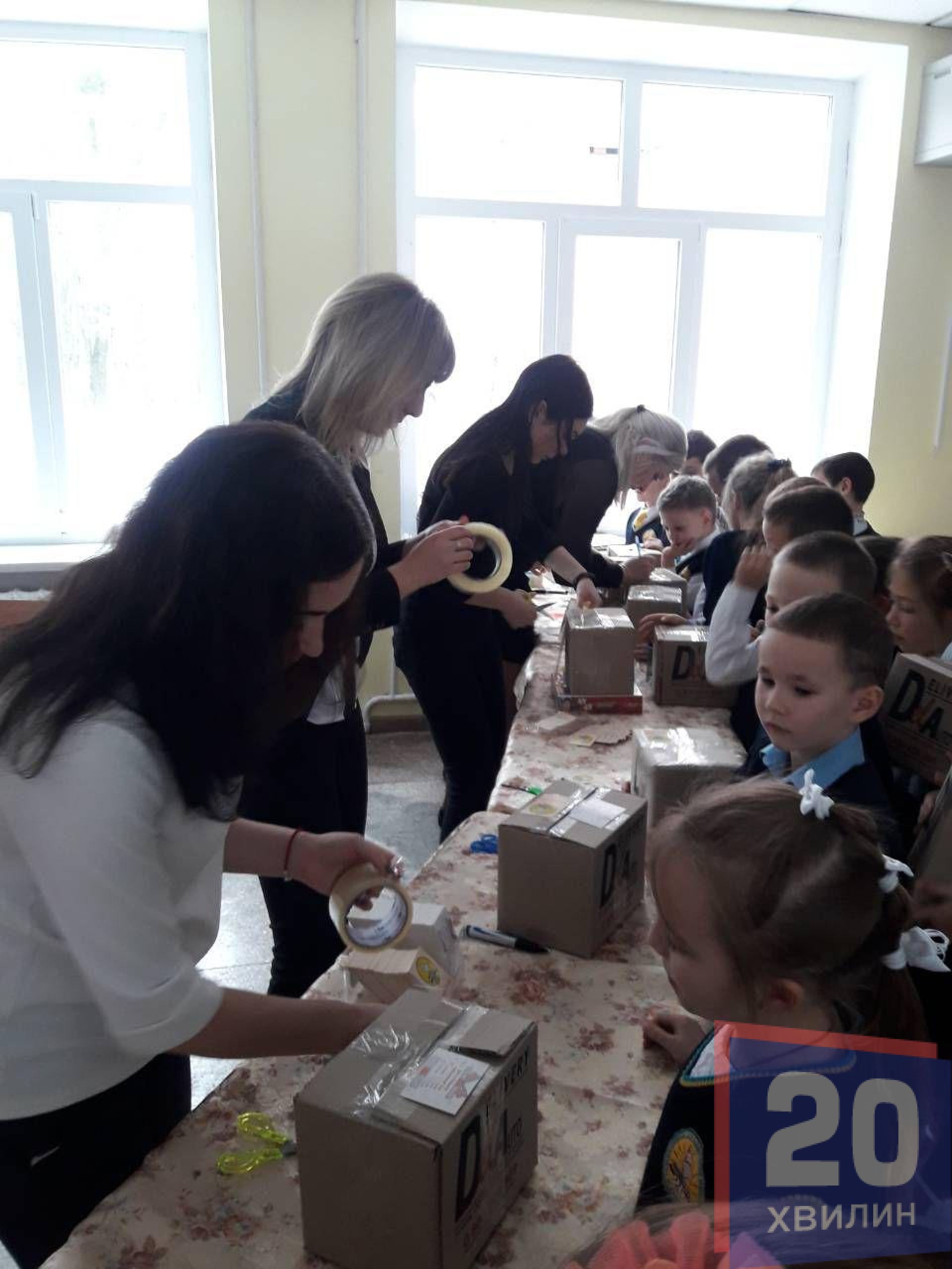 Пакунки учні принесли до вестибюлі шкіл. Вчителі наносили маркування на коробках, де позначилося для якого віку та статі цей подарунок.