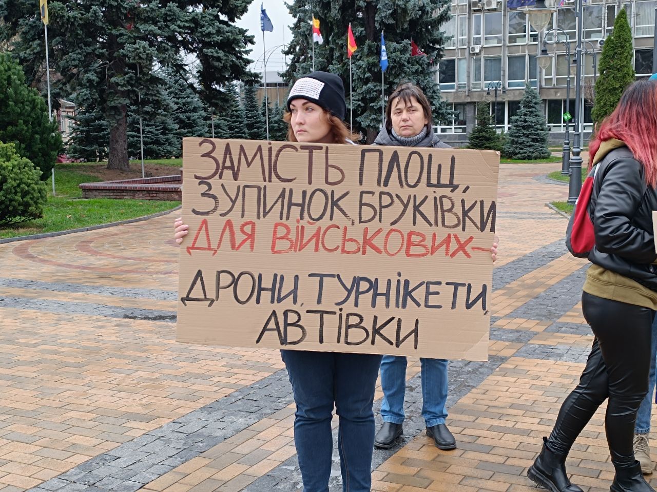 - «Купуйте дрони, а не бруківку». Містянки вийшли на першу акцію протесту й запрошують охочих на другу