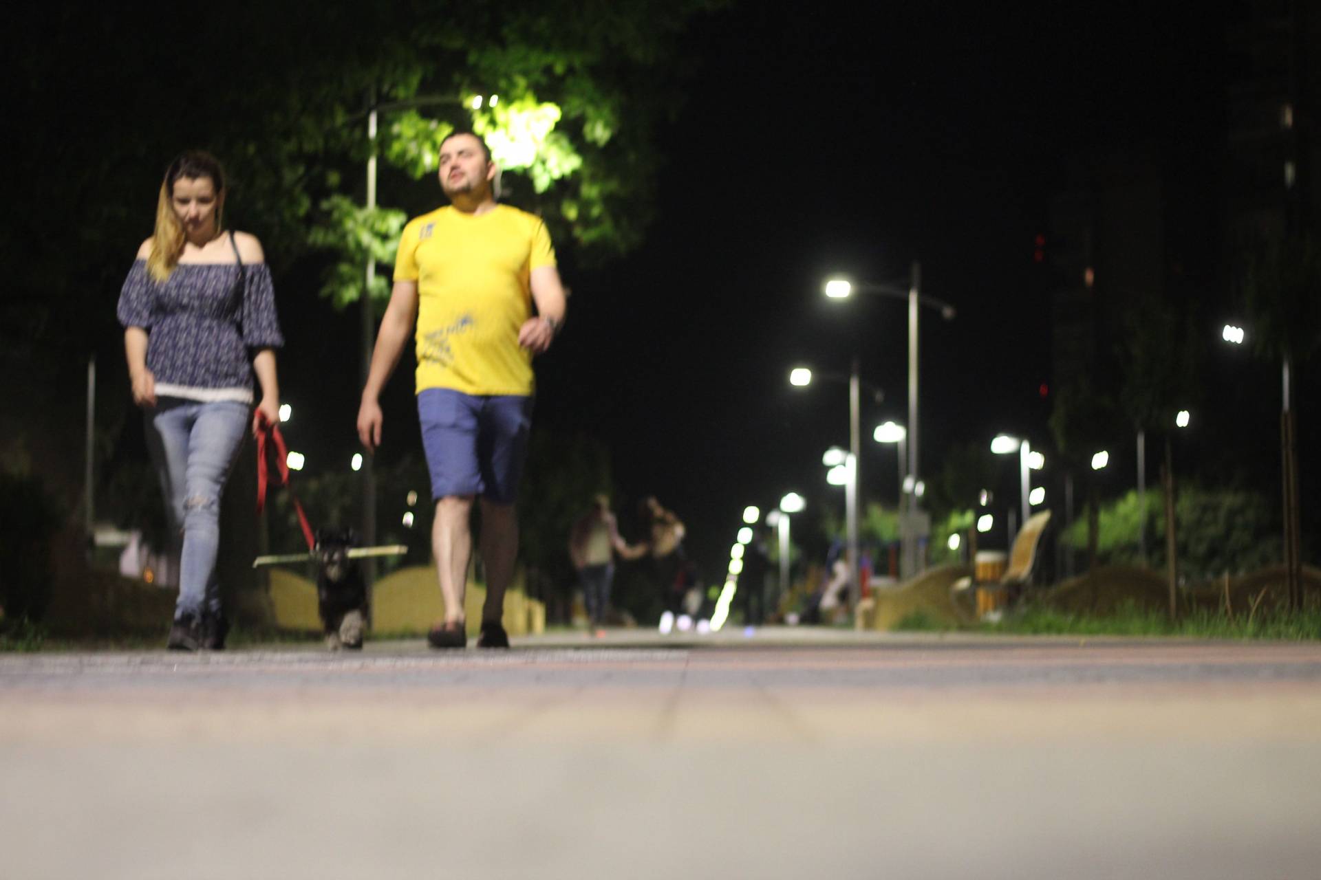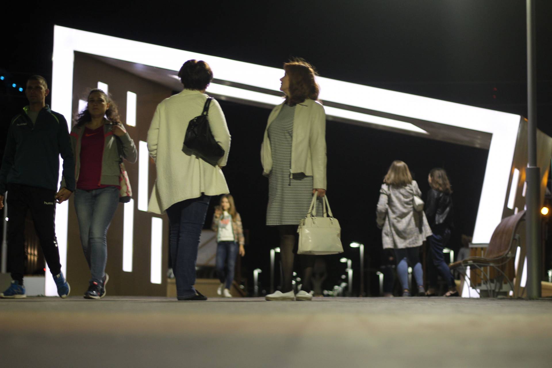 Часто гуляють саме ввечері. На що є кілька причин: вдень тут дуже спекотно та немає затінку; ввечері вмикають підсвітку кількох ключових об’єктів проспекту — кутастої Арки та штучного дерева, що схоже на космічний корабель.