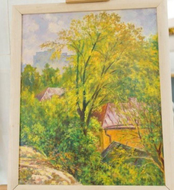 У великій кімнаті вражає відоме полотно «Бахчисарайський фонтан». Ветеран пояснює, що це копія картини Брюлова. Йому вона дуже подобається, тому й взявся відтворити. А ось пейзажі – це особисті спостереження. Мольберт дотепер зберігається у квартирі. Ветеран показав, як працював за ним раніше. Тепер уже картини з-під його пензля не народжуються. Роки не ті.