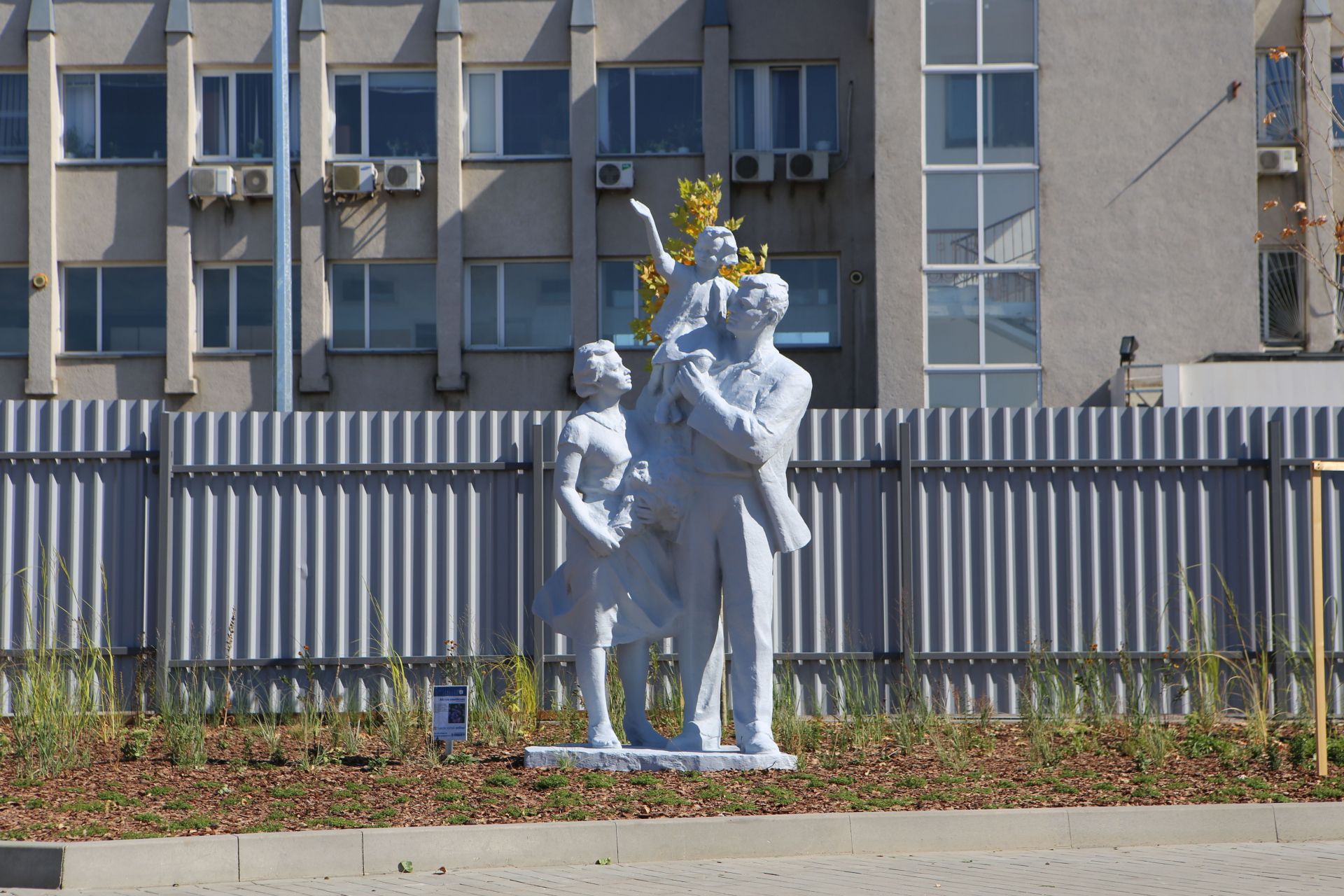 Поза тим, тут встановлена скульптура, яка, швидше за все, стояла на території м’ясокомбінату до його ліквідації. Вона відноситься до радянської доби і зображує родину з трьох людей: чоловіка, його дружину та маленьку доньку, яку тато тримає на руках.