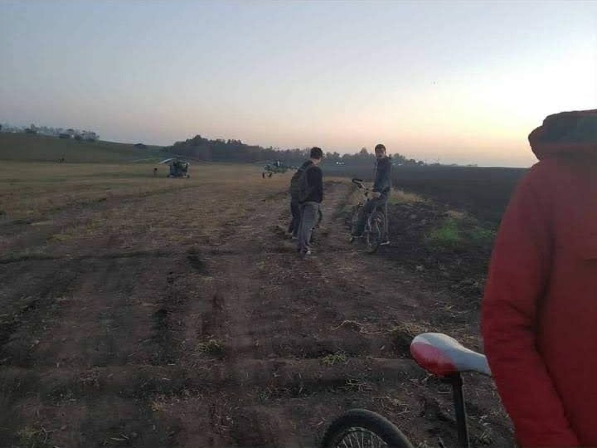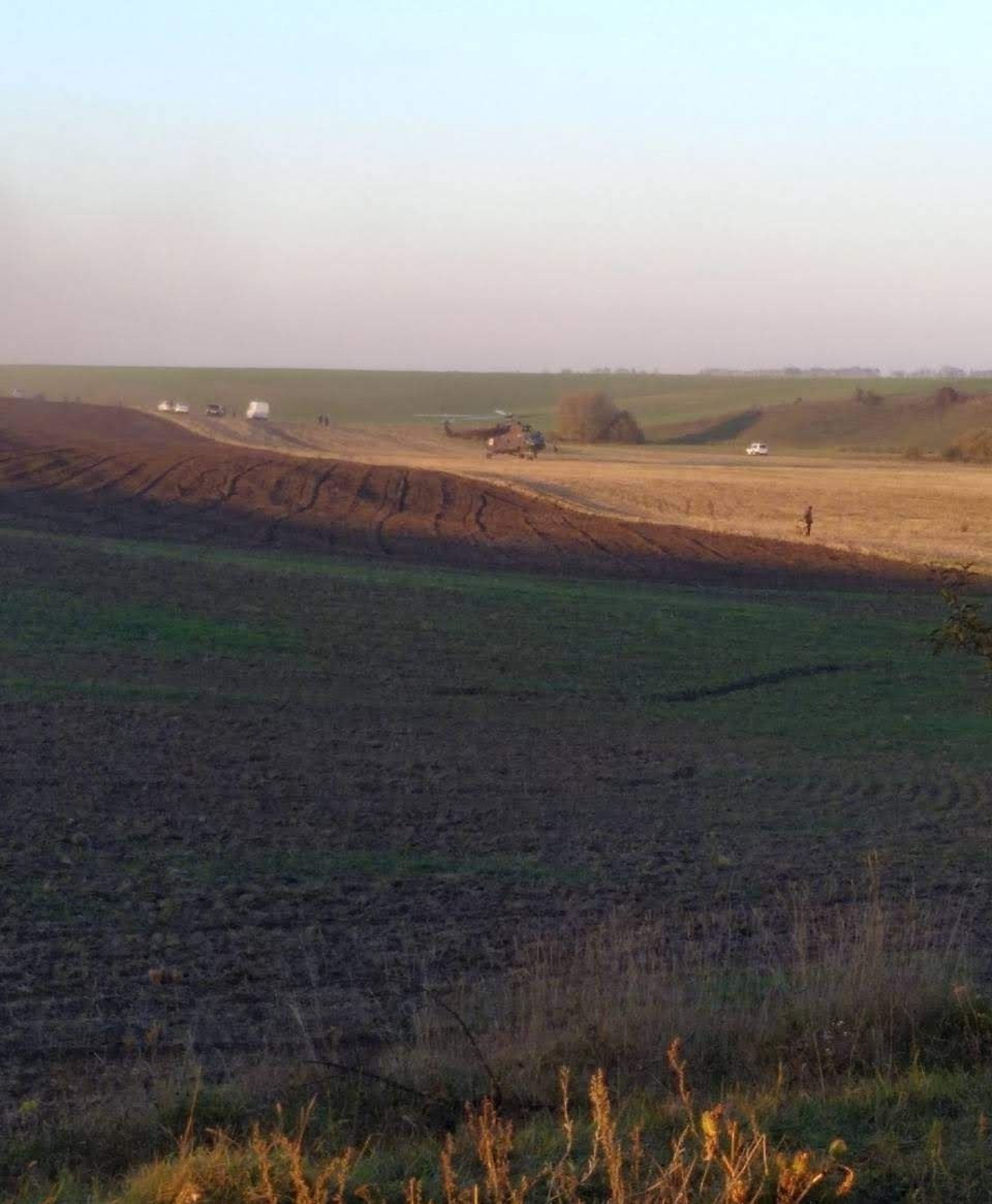 — За кілька хвилин вертольот сів. З нього вийшли люди, бігають і щось шукають, — пише очевидиця події, а за хвилину надсилає нове повідомлення: — Територію огородили, всіх людей і машини виганяють звідти. Кажуть, що два пілота розбилося. Обоє українці.