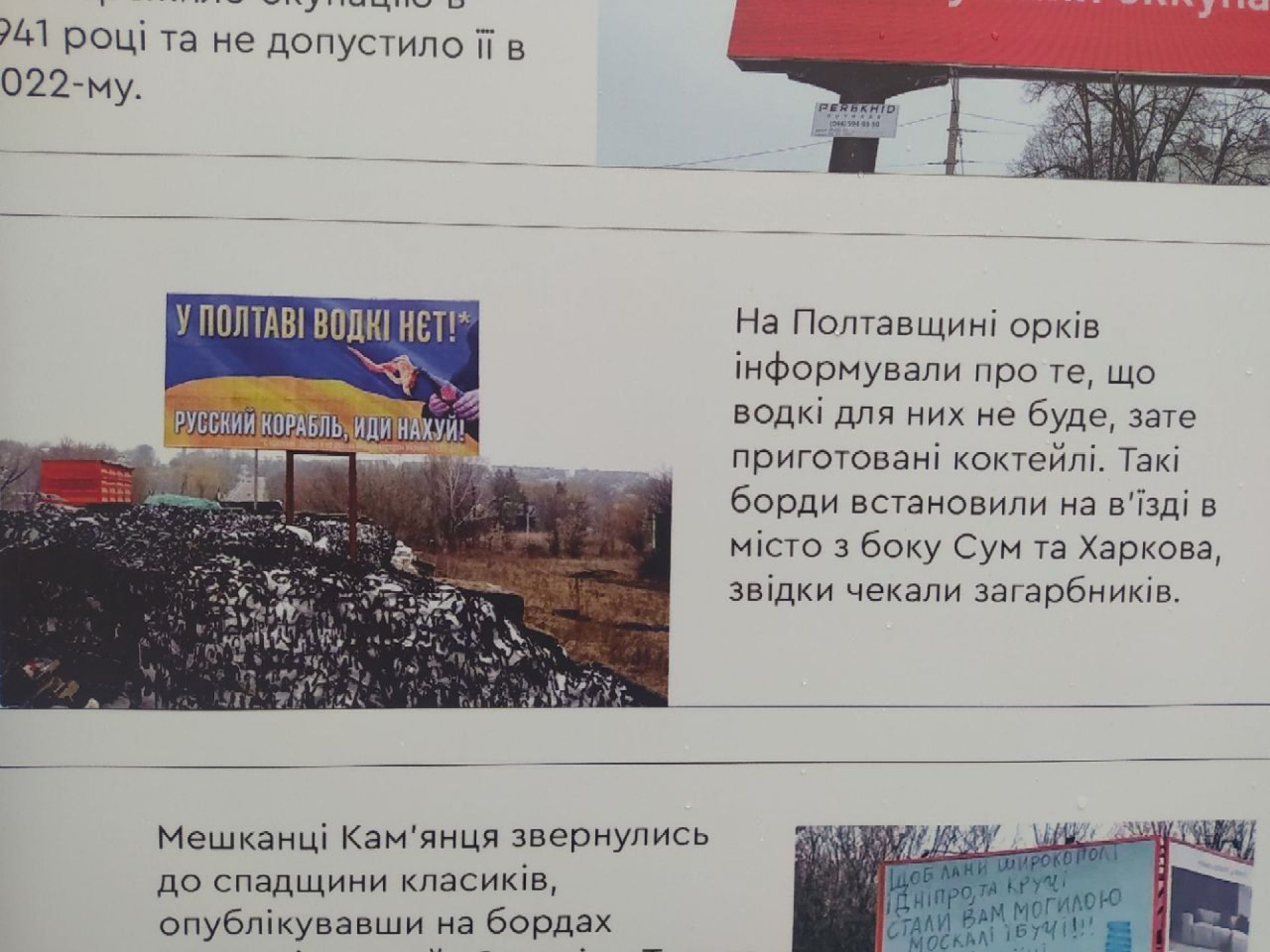 Рекламні площі навесні 2022-го заполонили різні «побажання» російським окупантам. Крім класичного, «Руський корабль — іди нах*й», були й унікальні, притаманні окремим областям України.