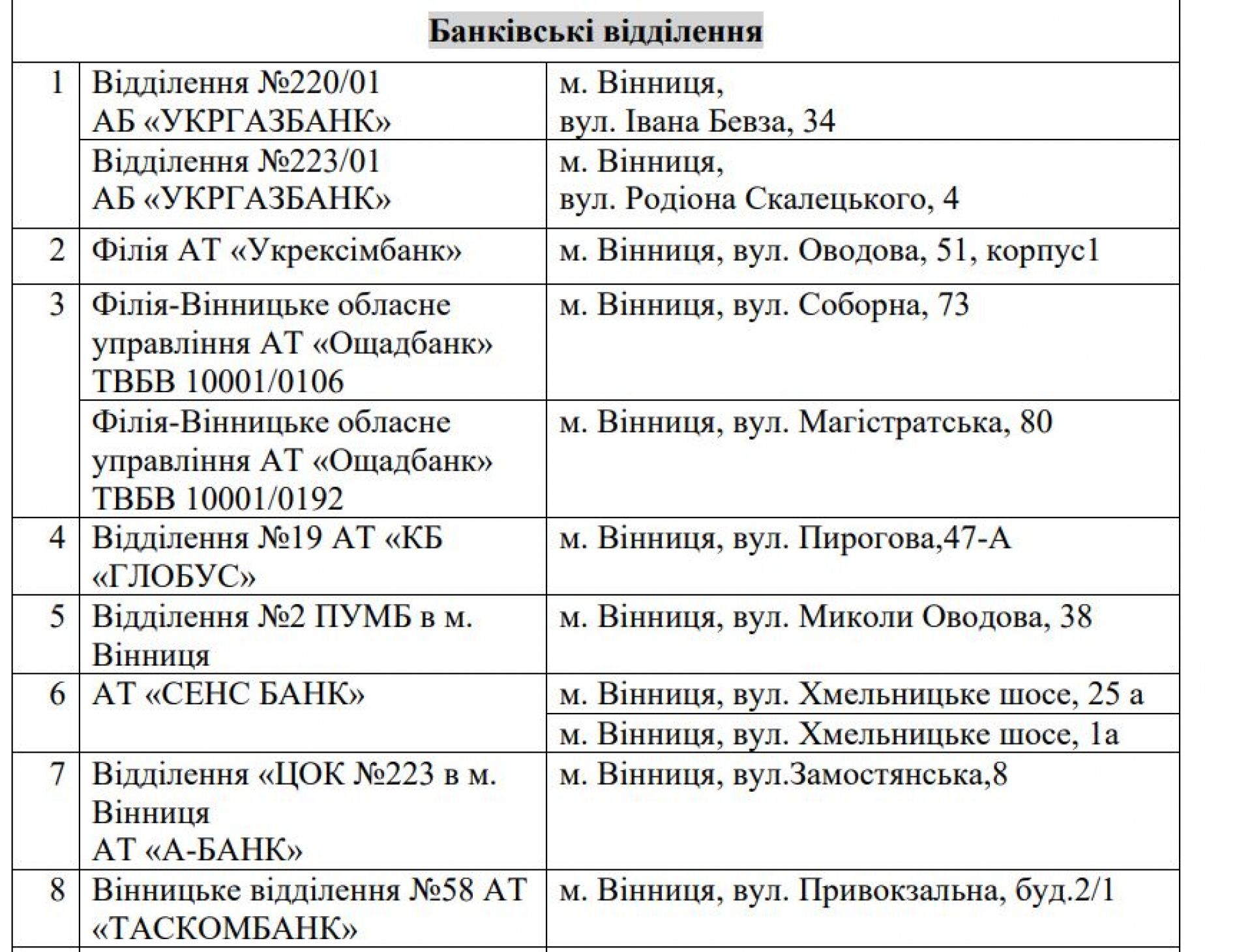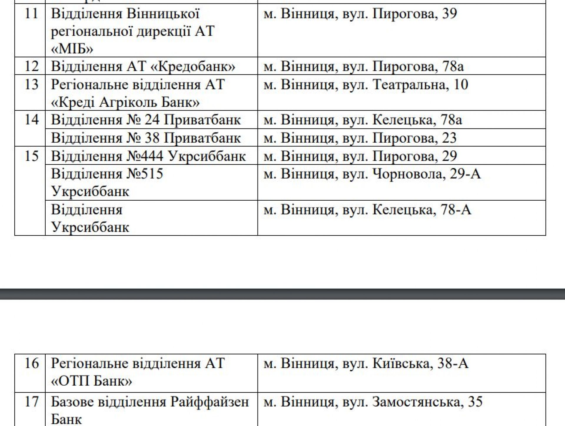Банки. Послуги клієнтам надаватимуть чергові відділення, які обладнані усім необхідним для роботи в умовах тривалих відключень електроенергії. https://www.google.com/maps/d/viewer?mid=1Y-nlssXal-cGKAOlAw0HtUnO_tEV-_I&ll=49.23466642980644,28.46072499999999&z=13
