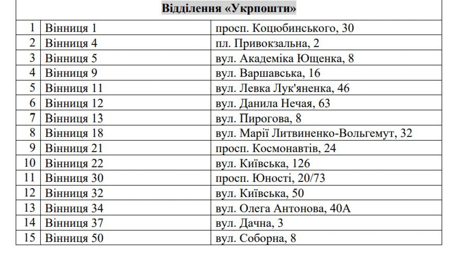 Поштовий зв'язок. Свою роботу зможуть забезпечити більшість відділень як Укрпошти, так і Нової пошти. https://www.google.com/maps/d/viewer?mid=1b9-n6Gn3SobkFzU--FcbBEynIZ_UIUg&ll=49.240799712750615,28.474664999999995&z=13