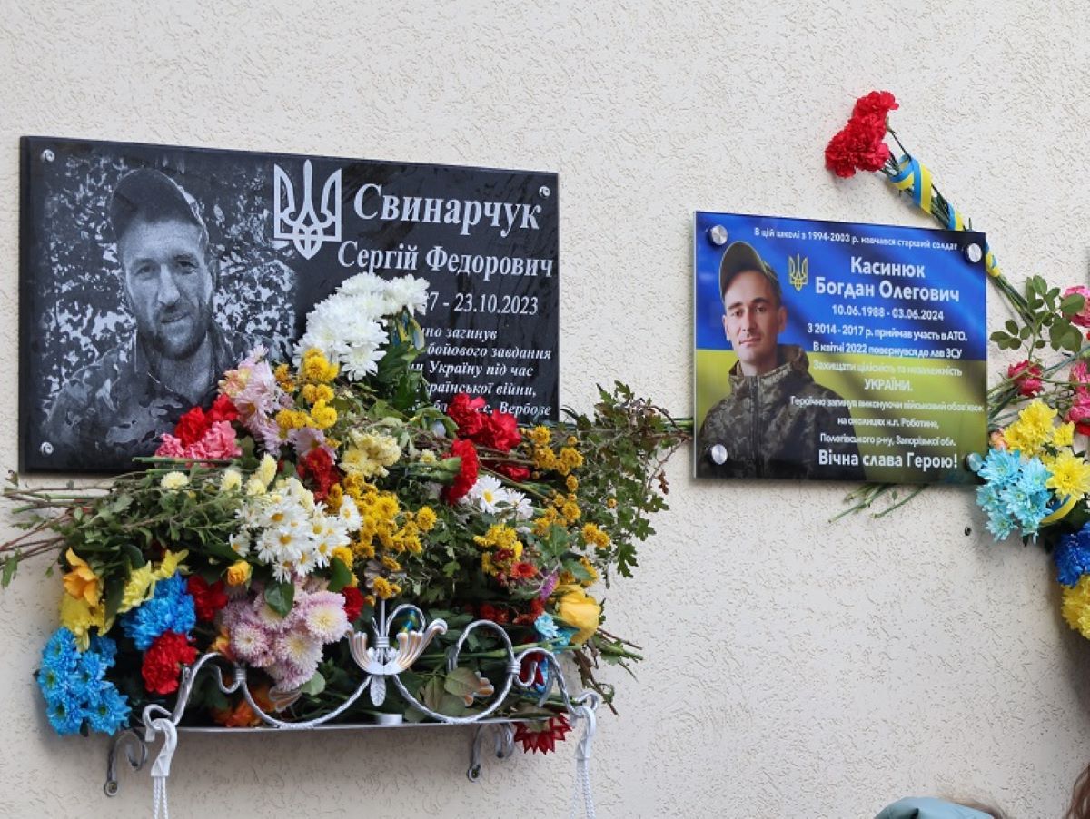 - Фотографії колишніх випускників школи Сергія Свинарчука та Богдана Касинюка відображені на меморіальних дошках, які відкрили 23 жовтня 2024 року.