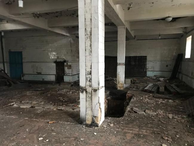 √πОбладнання і комунікації в цехах вирізані на металобрухт. Земля і старі приміщення. -