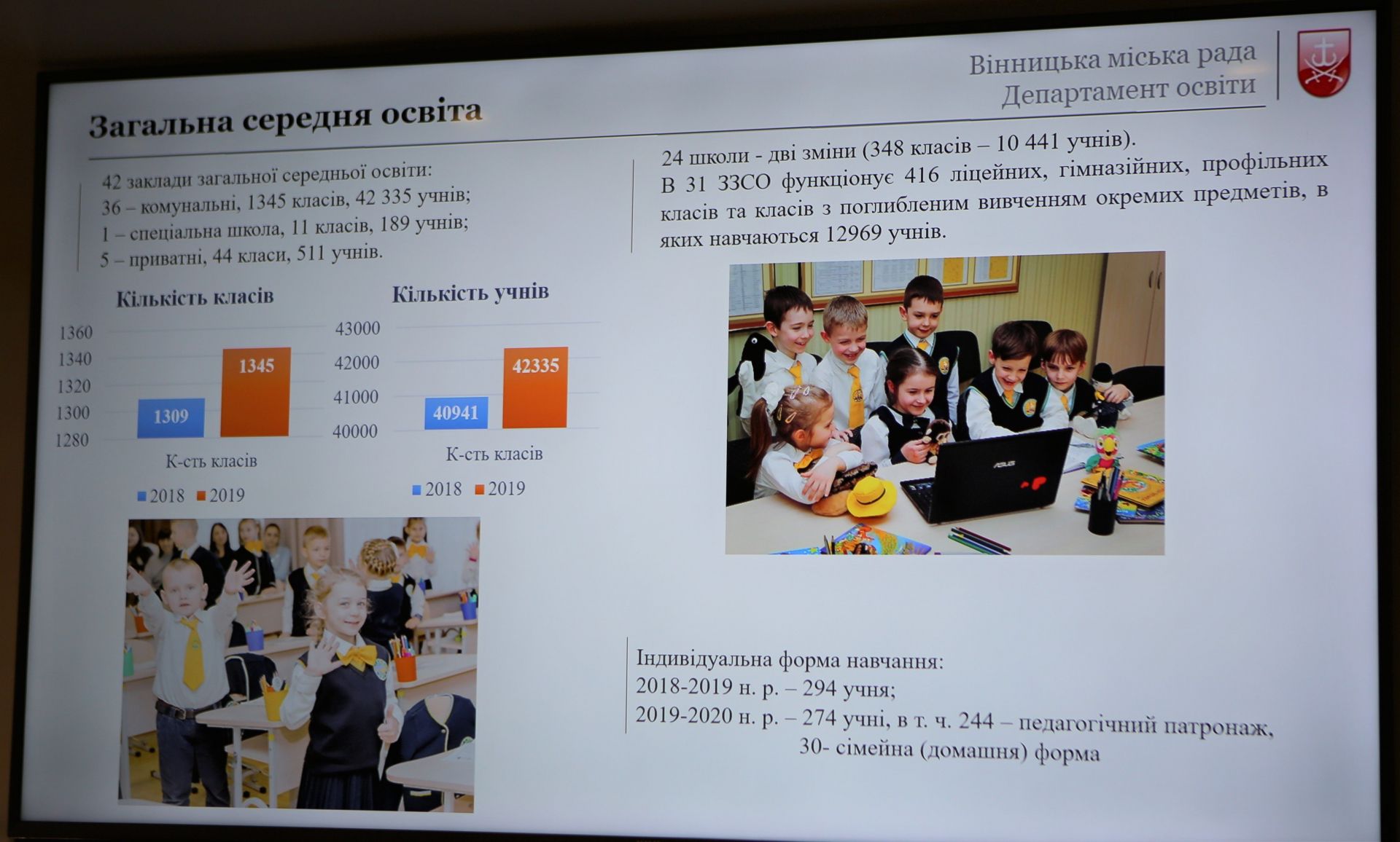 На виконкомі міськради, 21 листопада, розглянули питання про виконання «Про хід виконання Програми розвитку освіти на 2013-2020 роки». Очільниця департаменту освіти Оксана Яценко розказала про результати у сфері освіти у 2019 році. Зокрема, говорила про технічне забезпечення, ремонти шкіл і дитсадків та збільшення кількості школярів. Даємо головні тези з її розповіді: