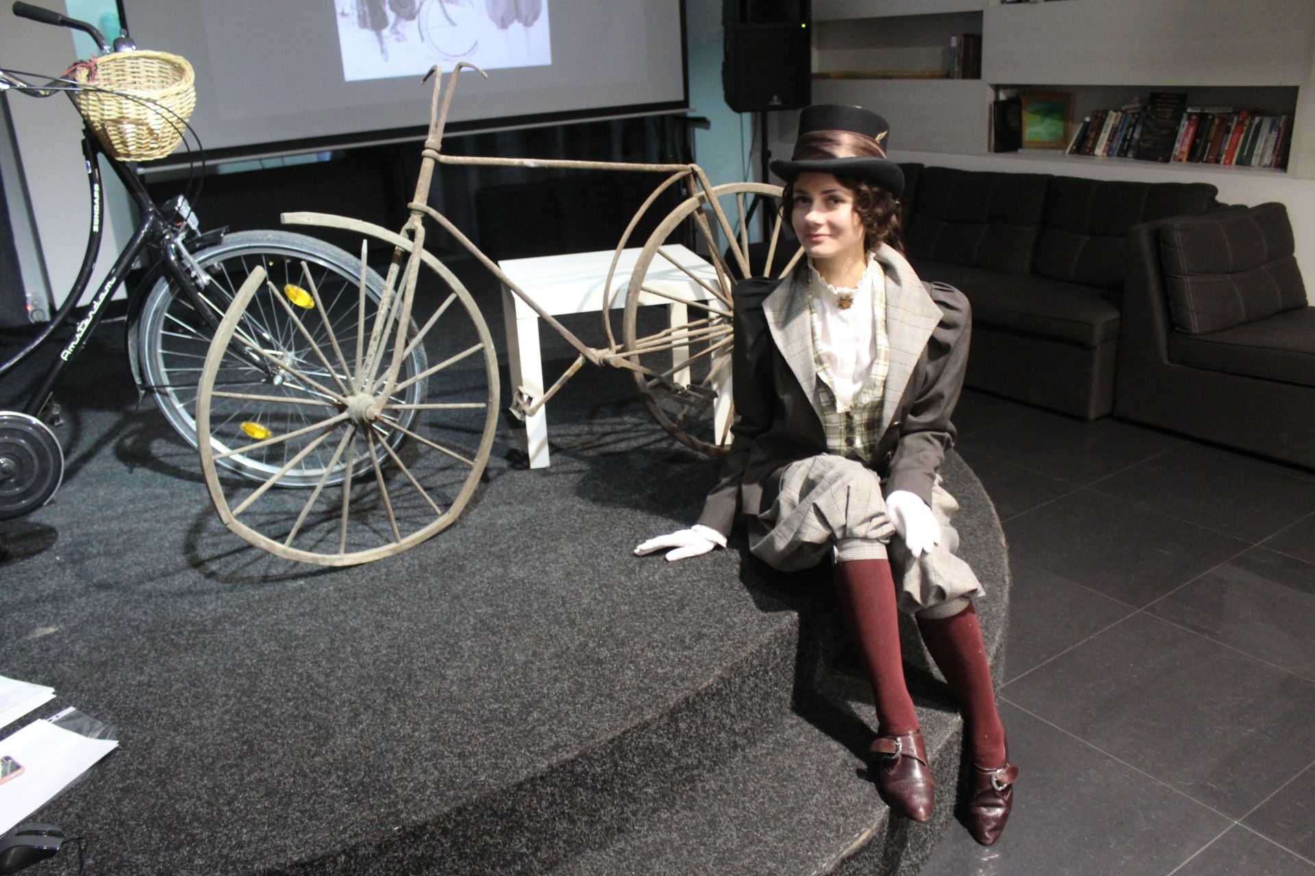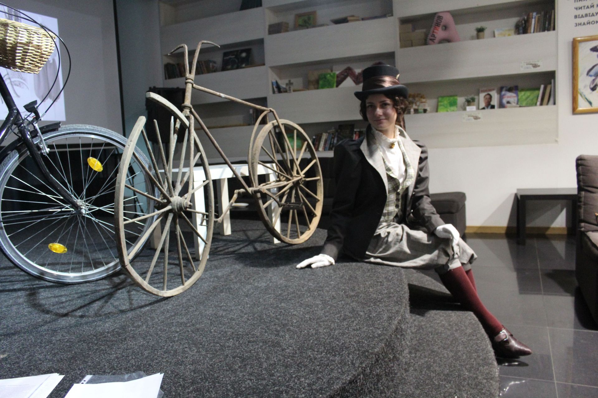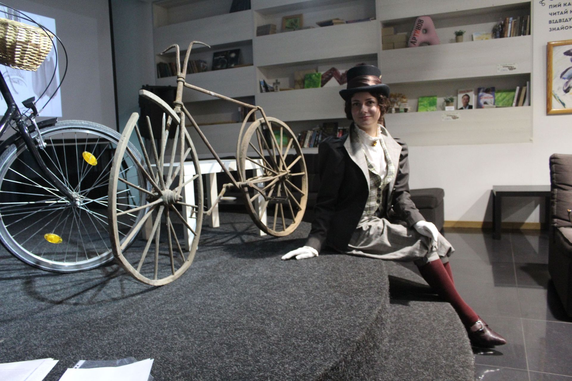 Реконструкторка історії Міла Поворознюк в образі велосипедистки початку 20 століття.