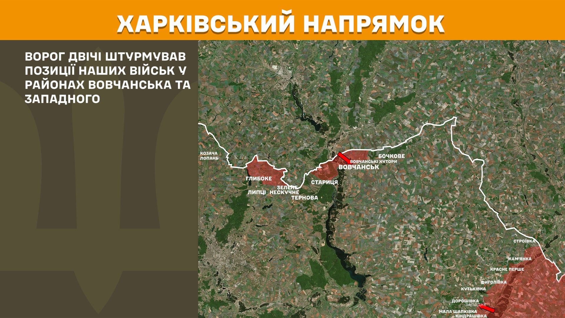 На Харківському напрямку ворог двічі штурмував позиції наших військ у районах Вовчанська та Западного.