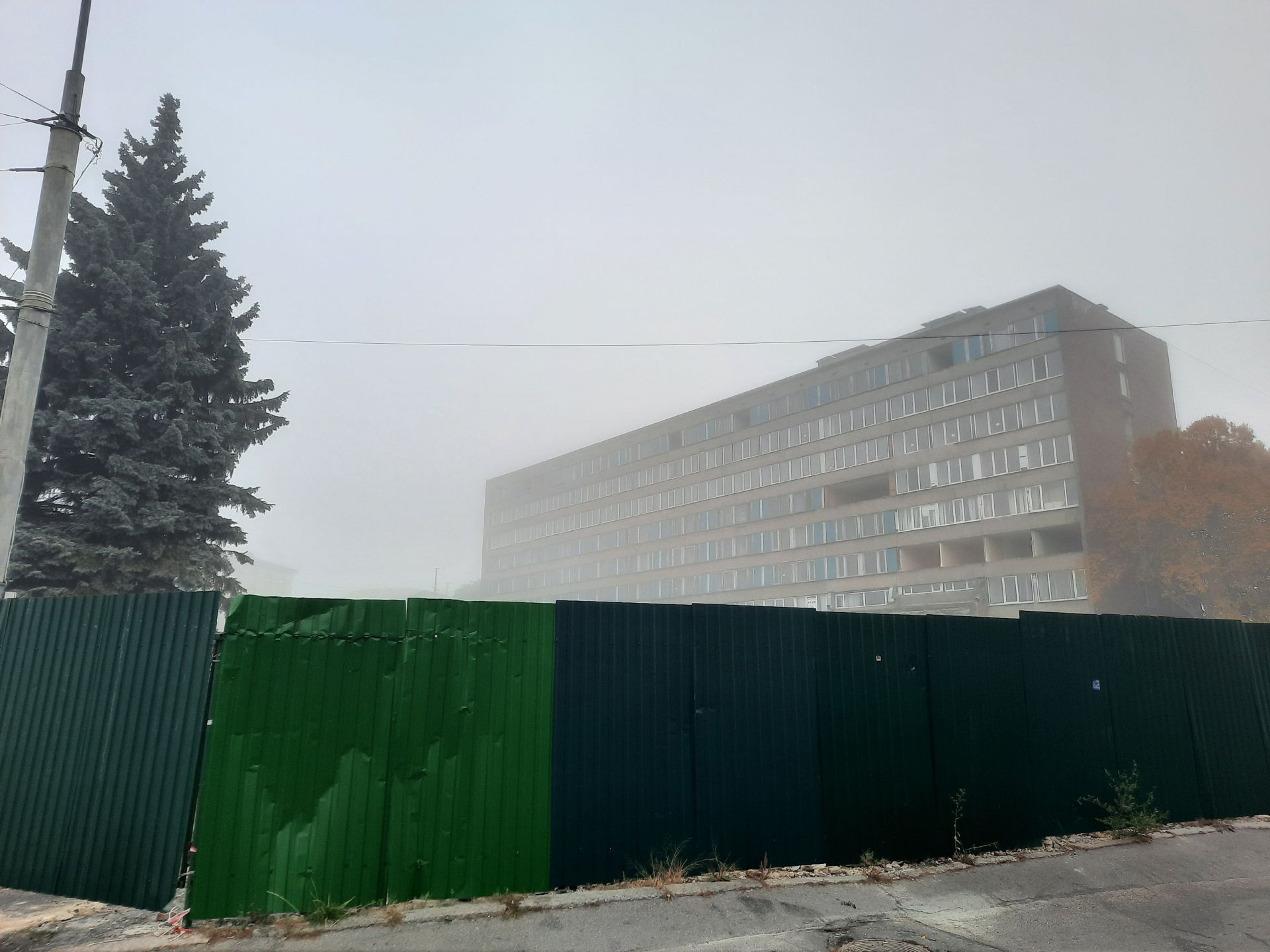 Вікна з головної будівлі вже почали знімати. На місці ми не помітили робочих о 09.00 ранку, але з кожним днем помітно збільшується кількість вікон, які вже зняли. Все огороджено парканом, є охорона.