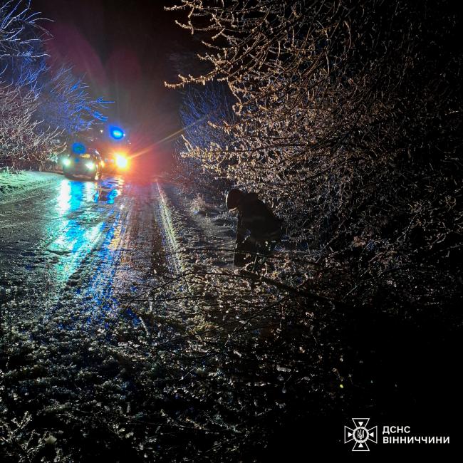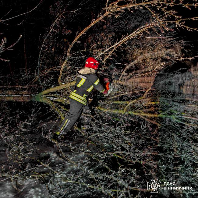 Найчастіше допомога знадобилася на дорогах. Дев’ять разів рятувальники розчищали проїжджу частину від повалених дерев, які через ожеледь перекривали рух у Вінницькому, Гайсинському, Жмеринському та Тульчинському районах.