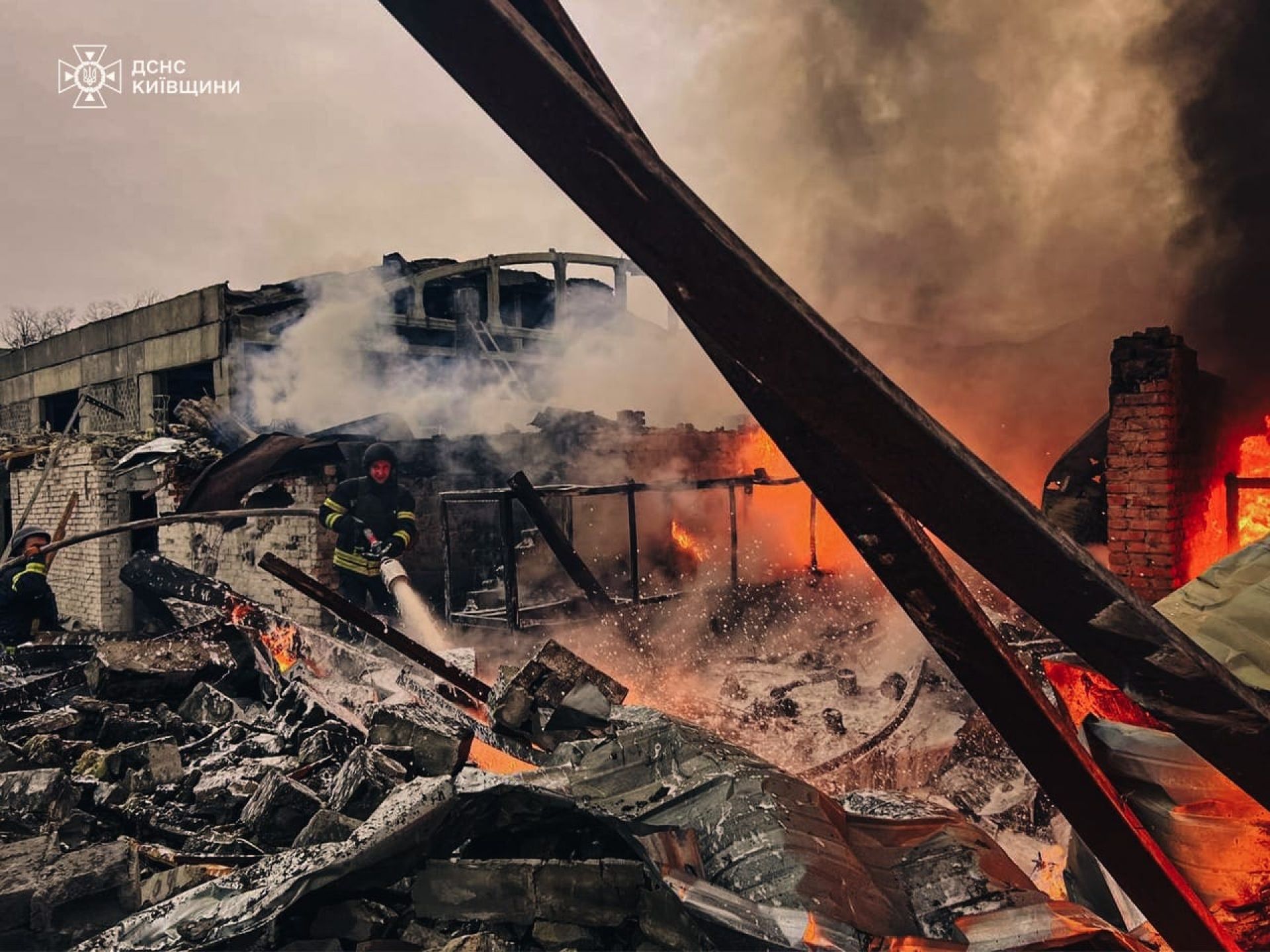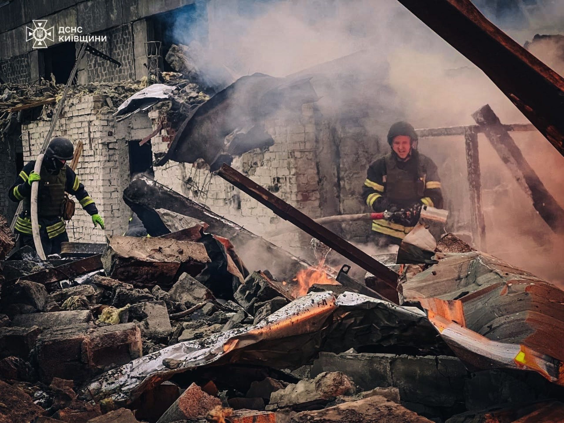 — Одна людина постраждала внаслідок ранкового ракетного обстрілу на Київщині. Зруйнована будівля, виникла пожежа в Броварському районі Київщини, — кажуть у ДСНС. — Постраждала одна особа, їй надали допомогу працівники екстреної медичної допомоги. Рятувальники ліквідували пожежу.