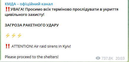 Саме в цей час киян попередили про загрозу ракетного удару.