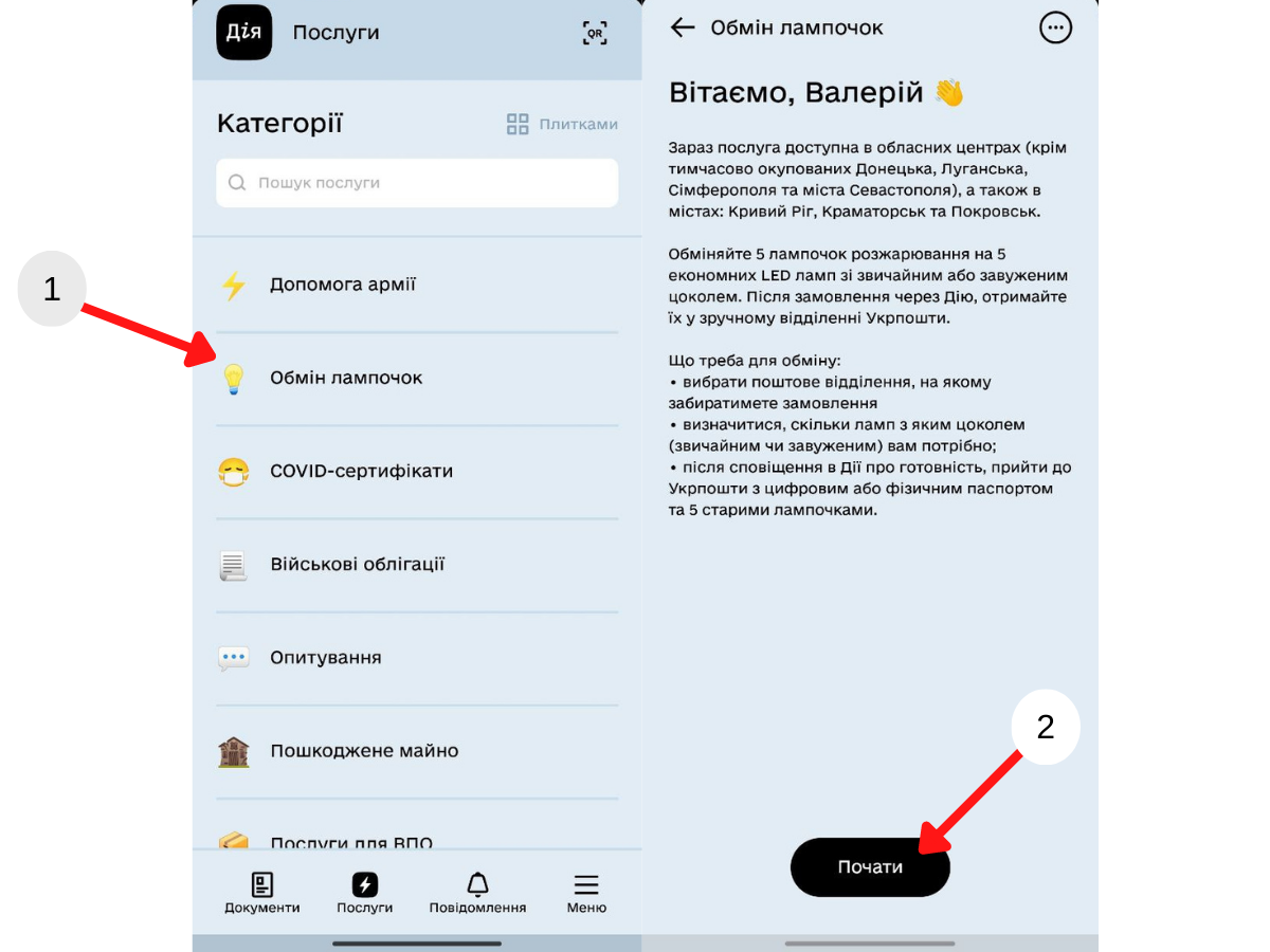Відповіді на поширені питання зібрали під послугою «Обмін лампочок» в «Дії».