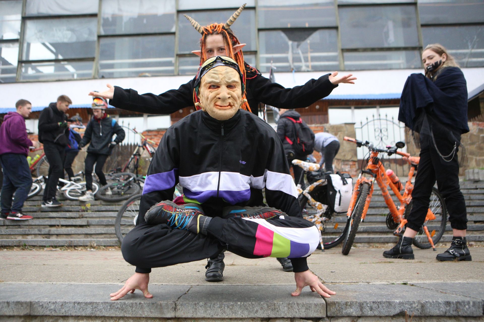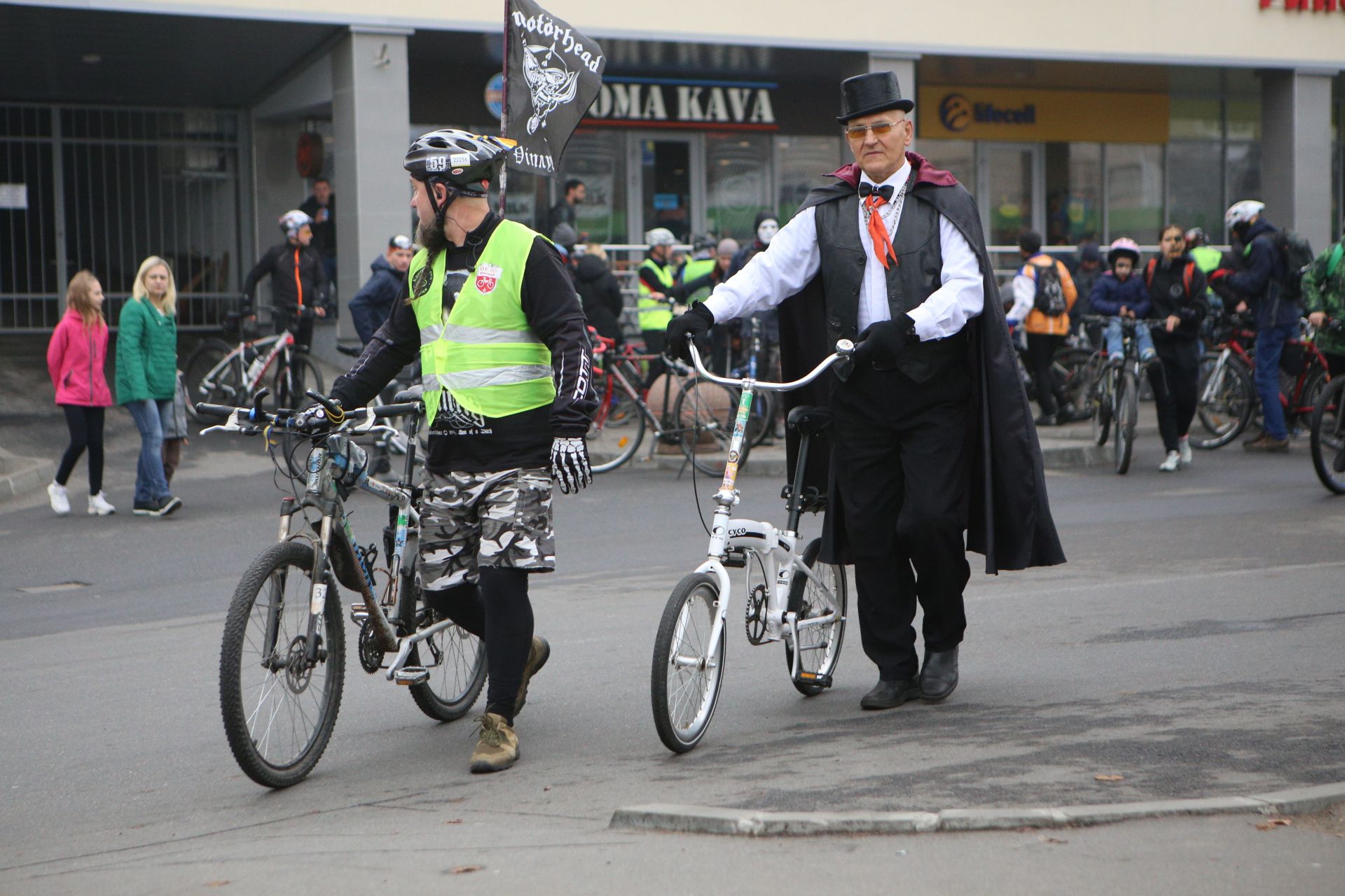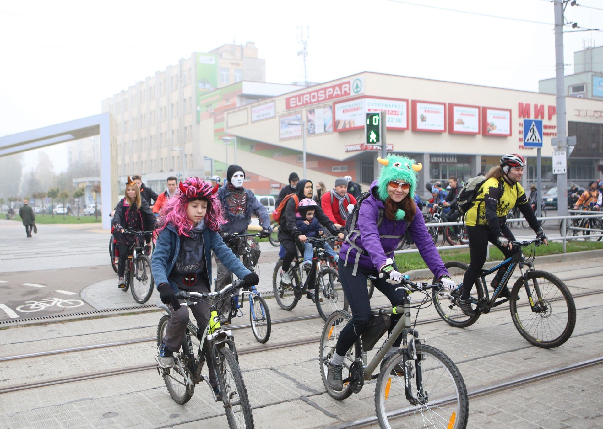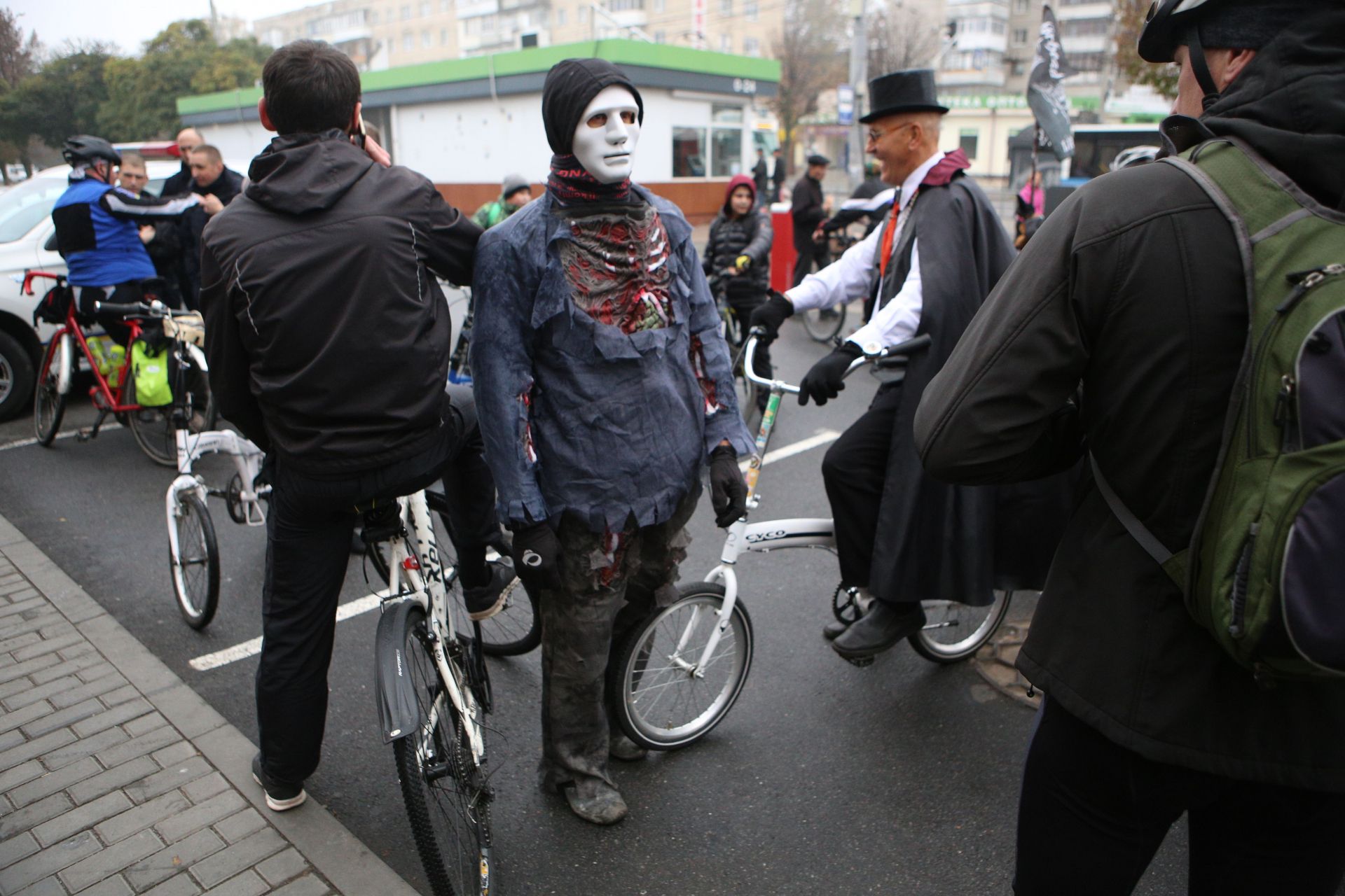 О 10.30 27 жовтня біля ТЦ «Мир» почали збиратися велосипедисти. Вінничани вдягнулися в химерні костюми живих мерців, вампірів та відьом. Усе до Дня всіх святих — Гелловіну, який велоспільнота відзначає святковим заїздом. Розпитали вінничан, як вони обирали собі персонажа: