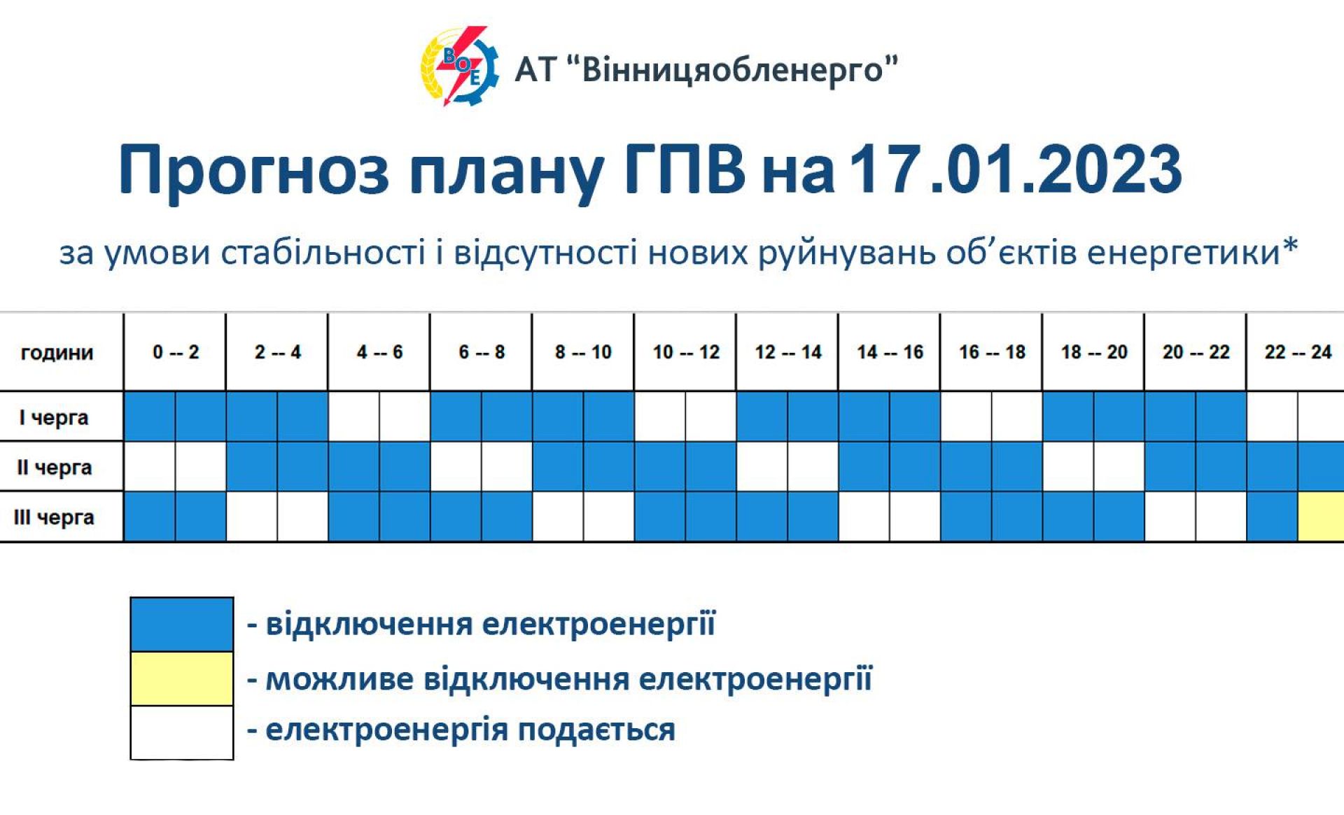 В обленерго своєю чергою попереджають про стабілізаційні відключення світла. Опублікували графік погодинного знеструмлення у Вінницькій області.