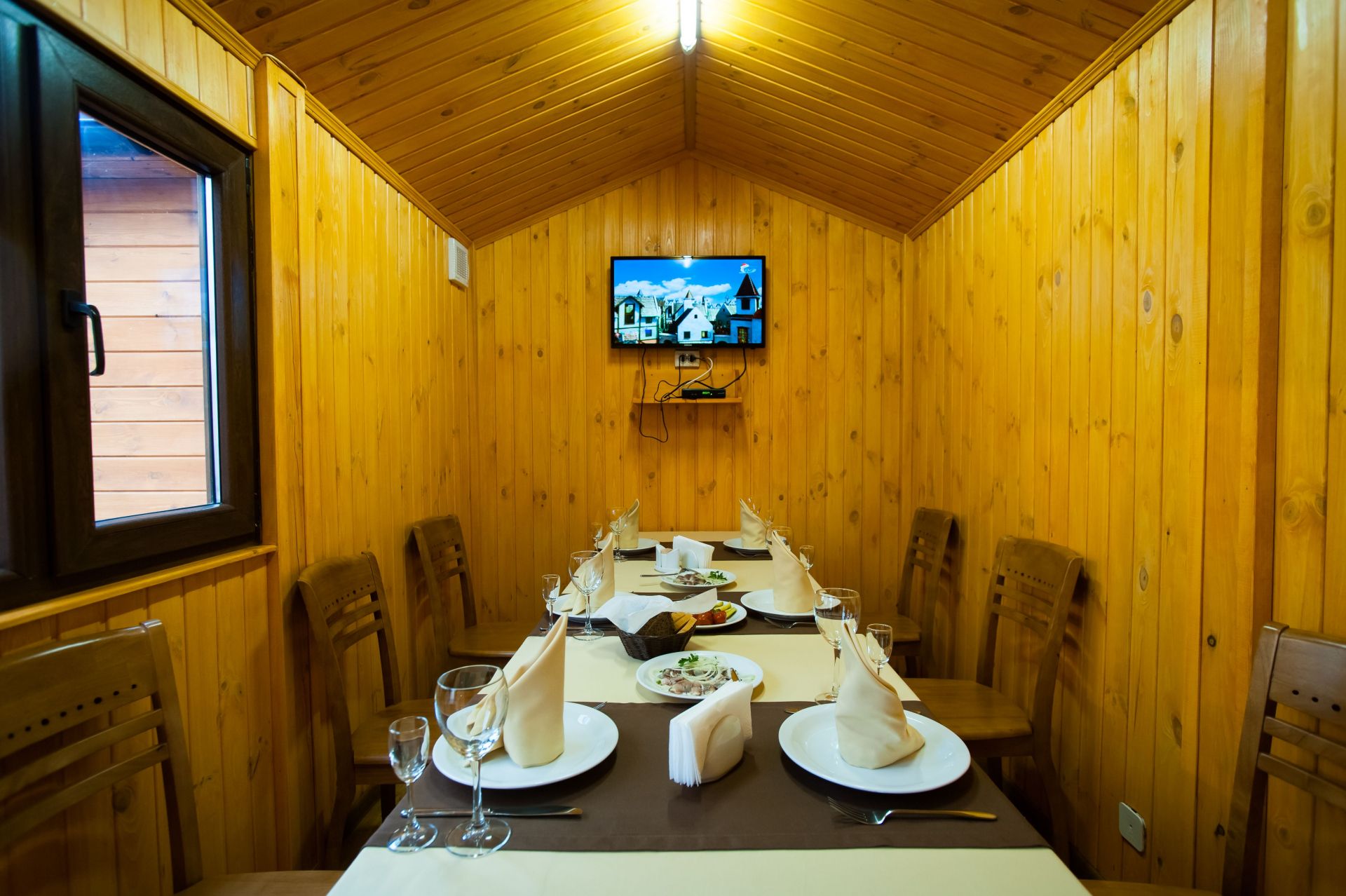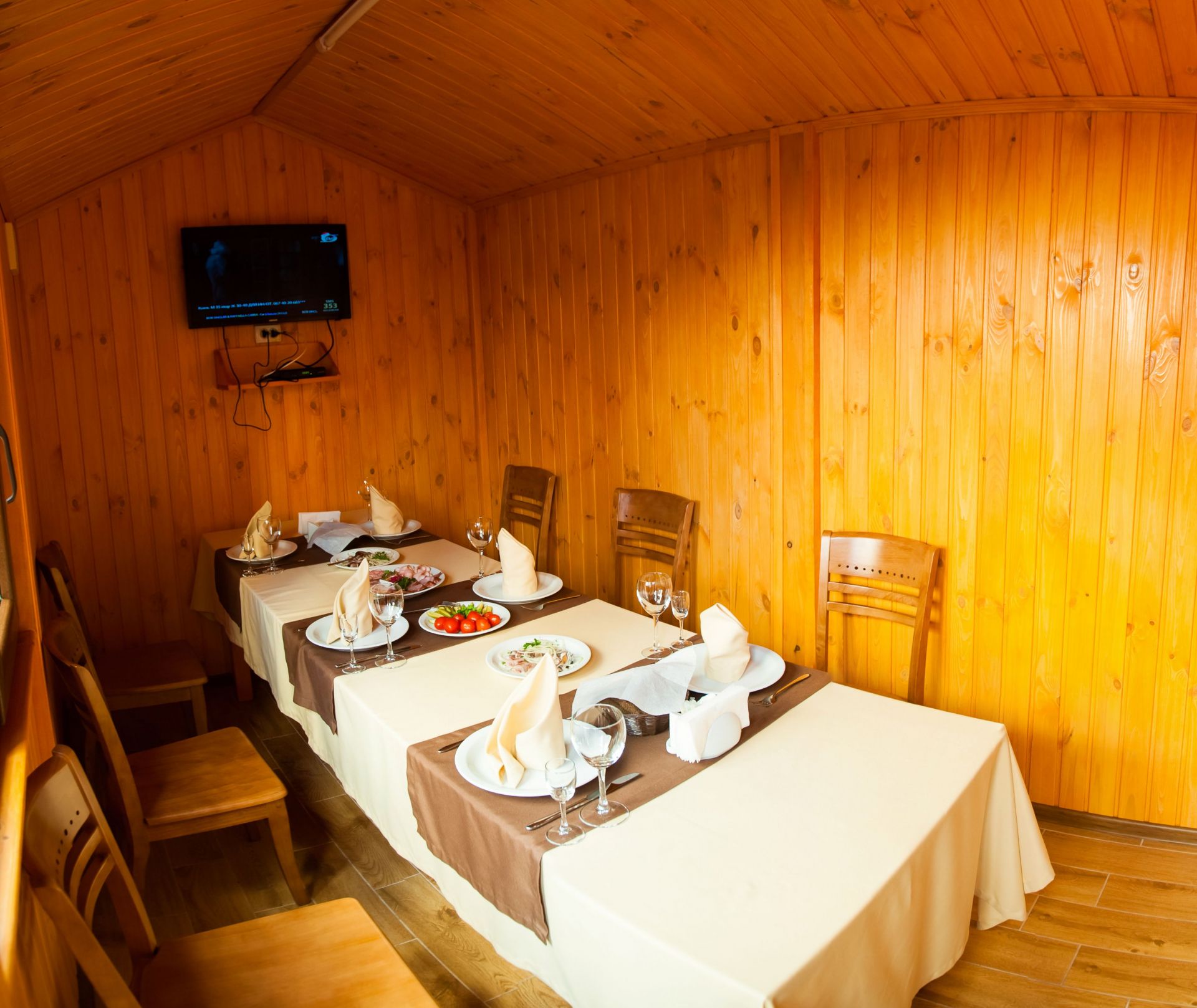 Банкетна зала розрахована на 30 осіб, допоможемо організувати будь-яке свято, або ж корпоратив, також Ви можете провести чудовий затишний вечір у наших зимніх бесідках! Пропонуємо 3 варіанти бесідок, як для великих компаній, так і для