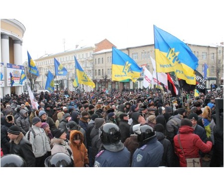 22 січня протест в центрі Києва перестав бути мирним. Від куль снайпера загинули дві перші жертви: Сергій Нігоян та Михайло Жизневський.Того ж дня у Вінниці двохтисячний натовп перекрив Соборну біля облдержадміністрації із криками «Банду геть!».