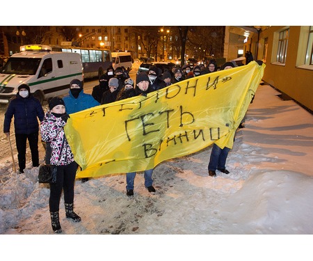 Вінницькі журналісти виявили солідарність та вимагали 26 грудня на Театральній площі справедливого розслідування побиття напередодні журналістки та активістки Євромайдану Тетяни Чорновіл.
