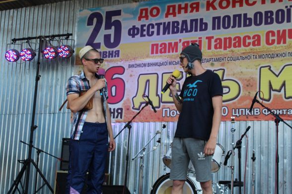 На початку концерту, присвяченому Дню молоді виступили представники команди КВН “Базар-вокзал”, які жартували про пляж Хімік, Тяжилів та інші знакові міста Вінниці.