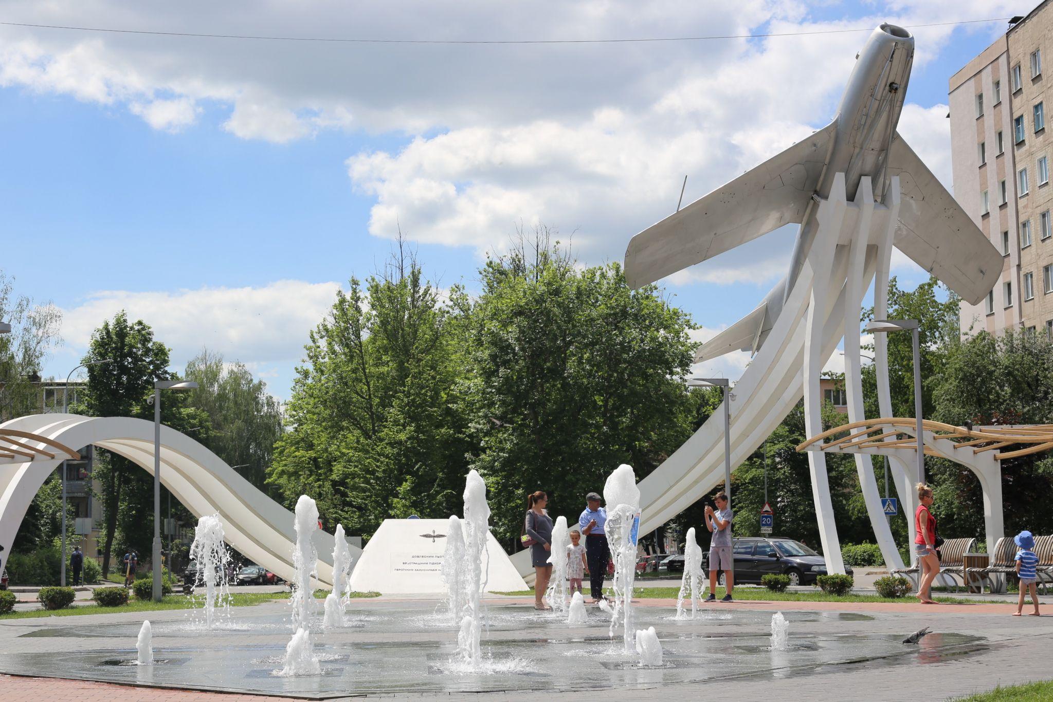 Площу з літаком, між проспектом Космонавтів та Лісопарком, реконструювали у 2017 році. Тоді ж тут запустили один з перших у місті «сухих» фонтанів: чаша захована під плиткою, струмені води б’ють з-під землі.