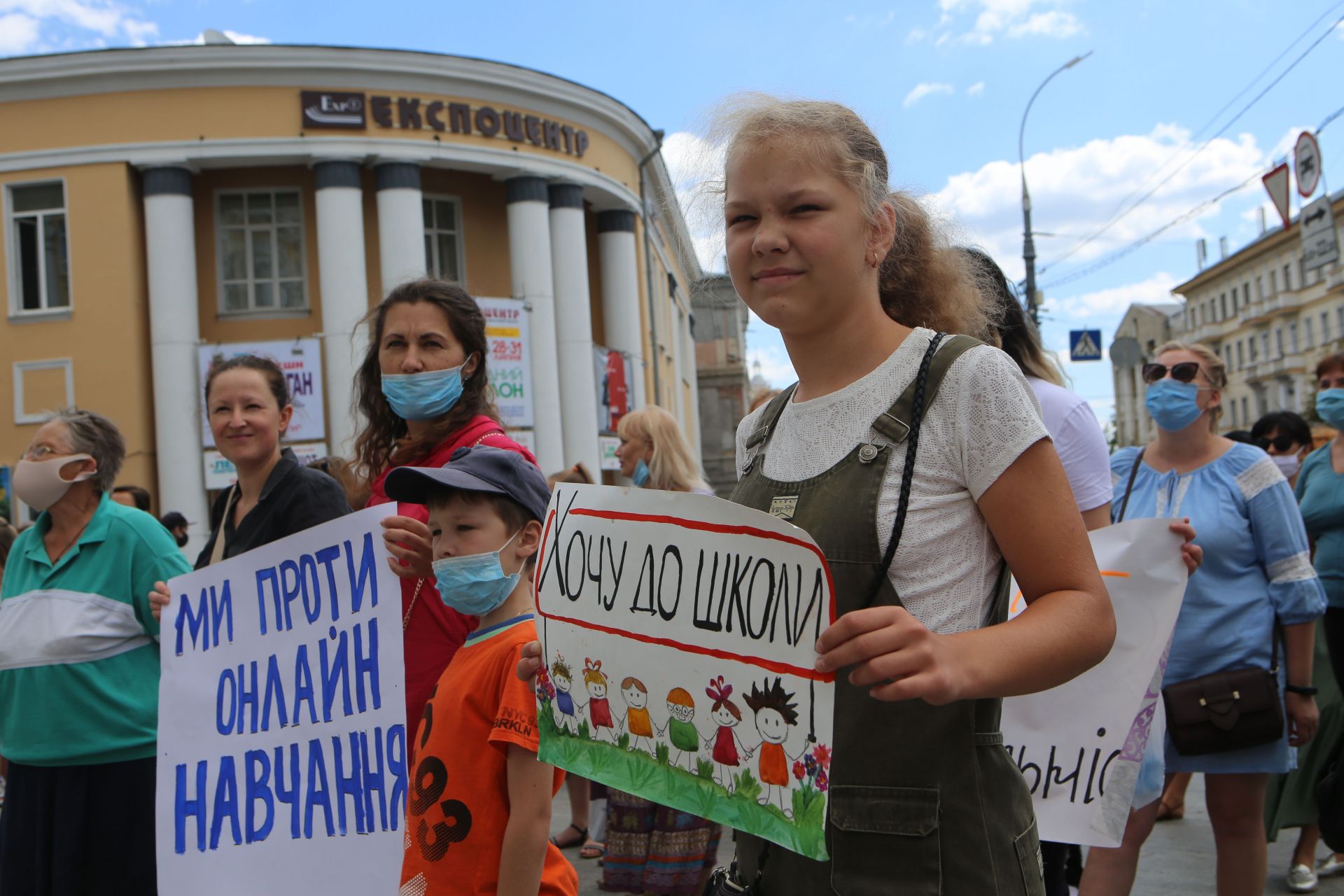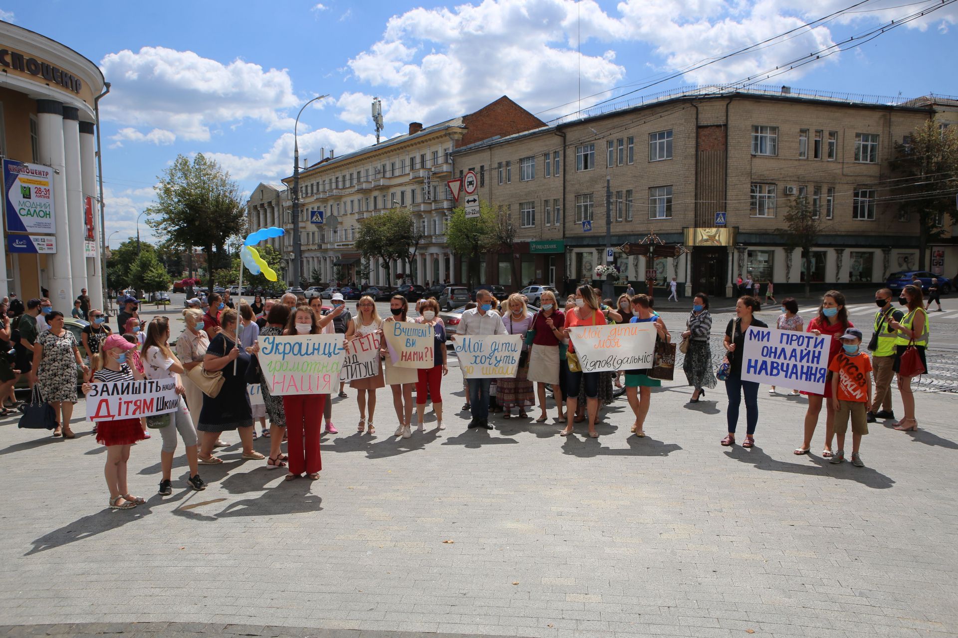 - Батьки вінницьких школярів вимагали почати новий навчальний рік у школах, а не перед екранами телевізорів.