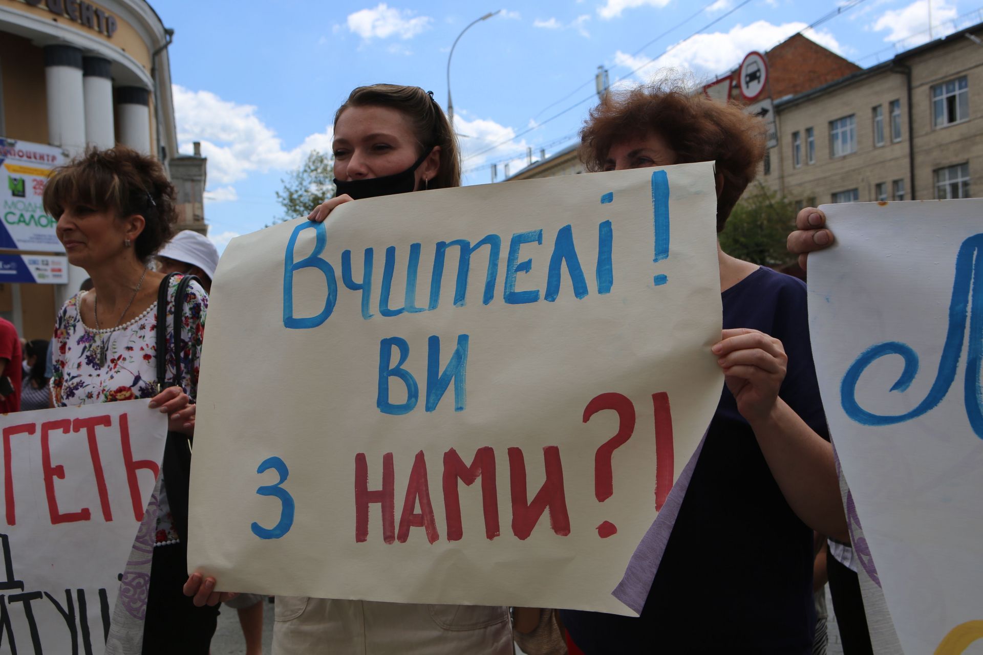 Поки в приміщенні структури велася розмова з чиновником, мітинг продовжувався. Люди скандували: «Ми проти онлайн навчання», «Залишіть нашим дітям школи», «Ні онлайн освіті!» тощо.