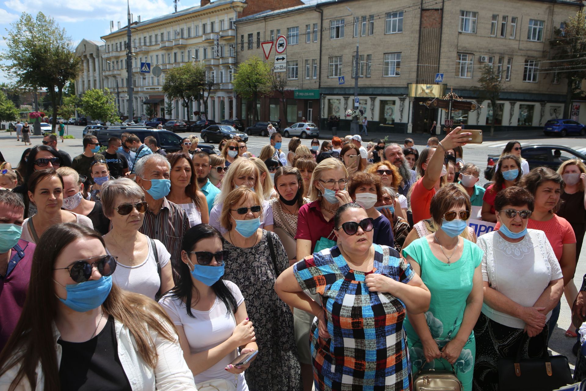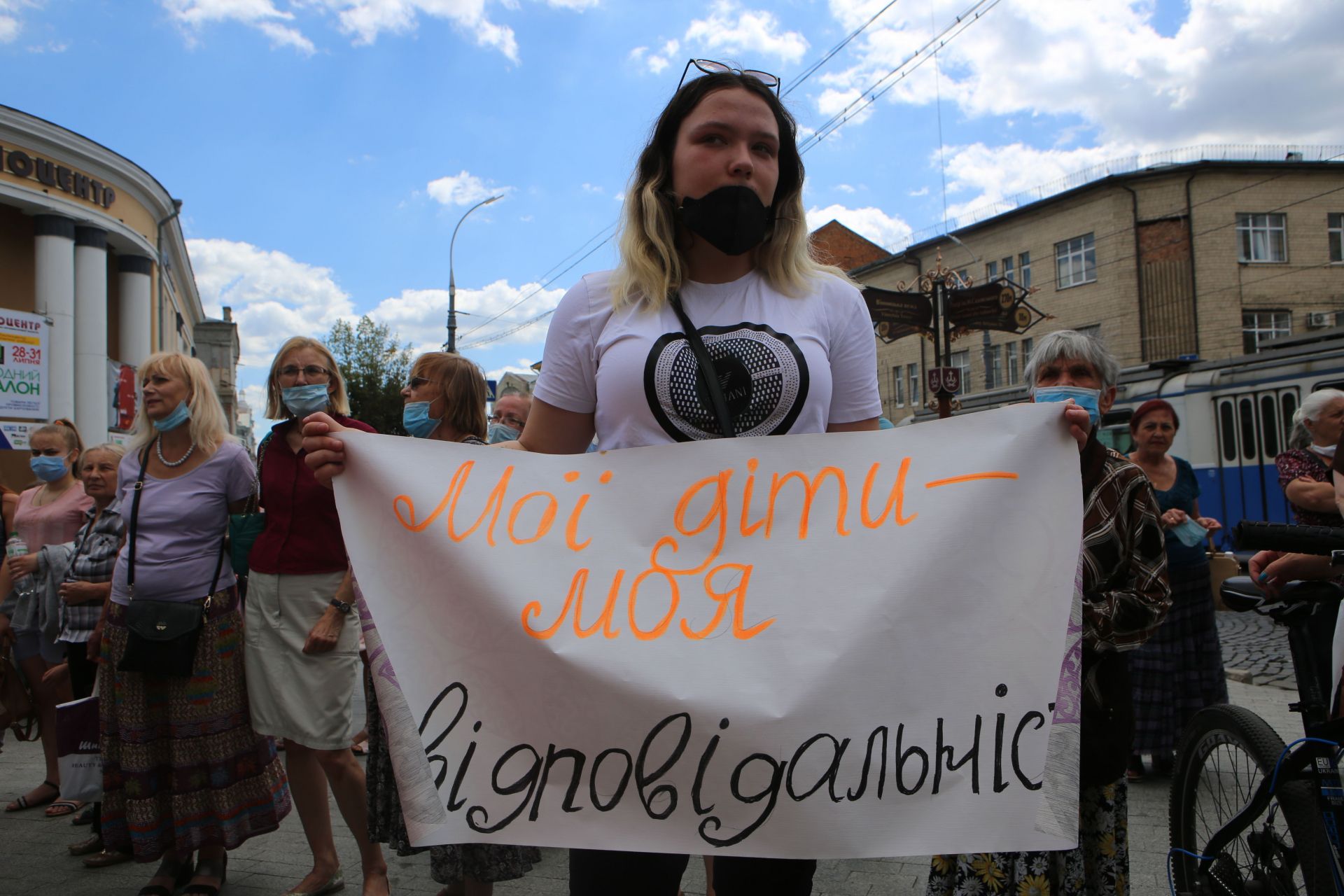 За півгодини вийшли ті, хто ходив розмовляти з заступником голови ОДА. Їх одразу обступили збуджені батьки. Одна з них, Надія Олійник, розказала присутнім, що 1 вересня навчання розпочнеться в очній формі. Особливо це стосується учнів 1-4 класів, яких неможливо навчати дистанційно.
