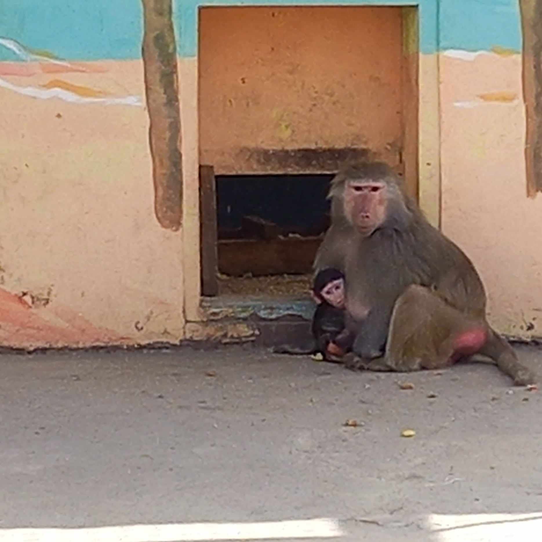 У вольєрі з павіанами-гамадрилами вирує справжнє життя. Малюк, який народився взимку, вже не боїться відходити від мами й робить перші самостійні кроки. Він намагається наздогнати старших родичів і тішить відвідувачів своїми витівками.
