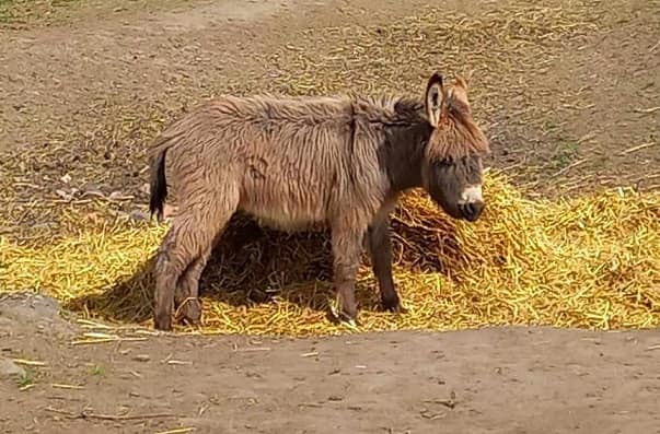 Неподалік пасеться й малюк-віслючок, який за останній тиждень помітно змужнів. Він вже не дрімає біля мами, а разом з дорослими ласує свіжою травичкою та гостинцями від відвідувачів.