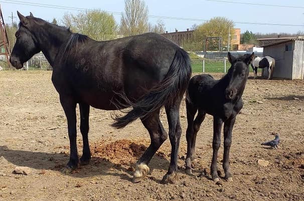 Лошатко гуцульських коней, яке з'явилося на світ місяць тому, вже впевнено бігає за мамою та пустотливо щипає траву, а її очі сяють цікавістю.