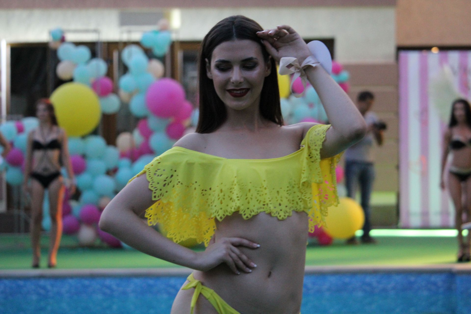 Вишукане свято краси проходило біля басейну з кількома фотозонами, де гості встигли зробити селфі та фото, адже конкурс розпочався із затримкою.