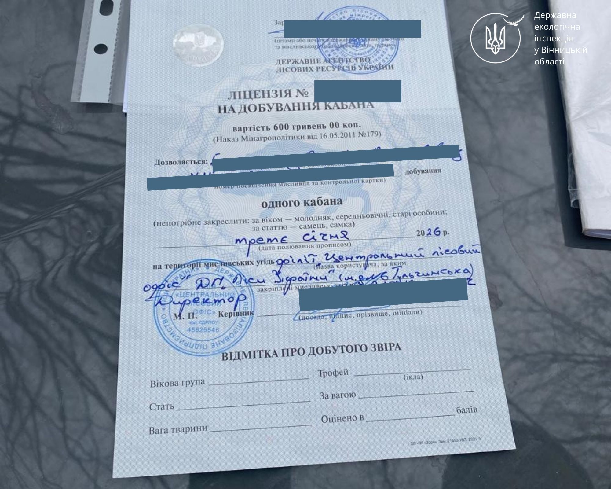 В період з 3 по 4 січня фахівці Державної екологічної інспекції у Вінницькій області провели контрольні заходи, спрямовані на забезпечення дотримання вимог законодавства у сфері мисливського господарства та полювання. Робота проводилась в Тульчинській та Калинівській територіальних громадах.