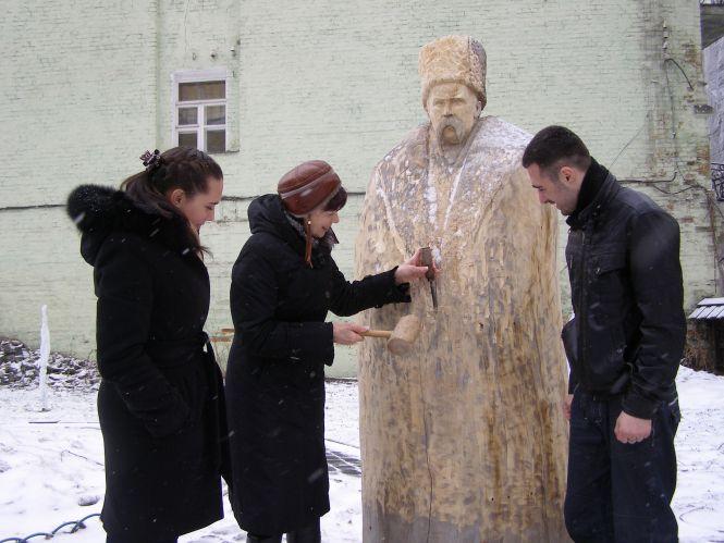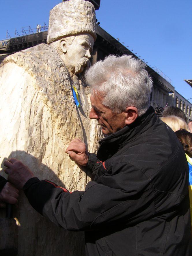 Просив зробити не один, а декілька надрізів. При цьому натхненно декламував рядки Шевченка. Щоправда, щиро зізнався, що йому не подобається образ нашого генія у кожусі і шапці. Саме таким зобразив його скульптор.