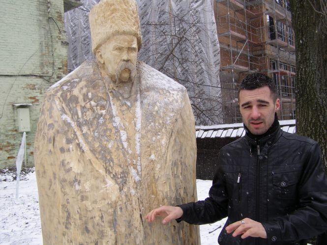 Родзинкою стало те, що зробив скульптуру з дерева. Працював з багаторічною осикою, діаметр якої становив понад один метр. Висота пам’ятника була два метри. Щоб на дереві з’явилося необхідне зображення, треба було багато тесати долотом.
