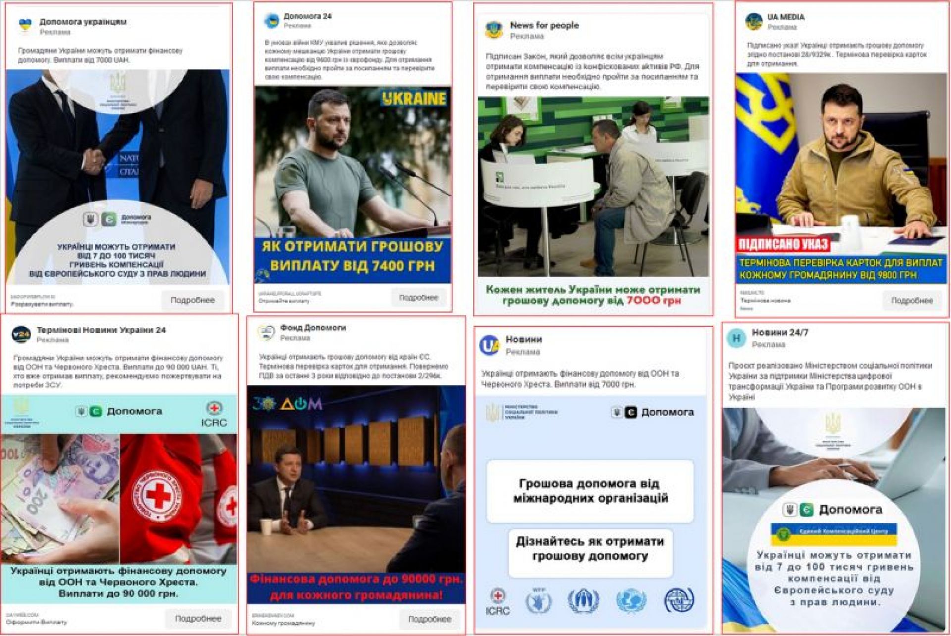 Зловмисники виманюють дані банківських карток українців, обіцяючи їм «фінансову допомогу» від нібито ООН, ЄСПЛ, Червоного Хреста тощо. Шахраї заявляють, що такі виплати проходять «за рахунок конфіскованих активів рф».