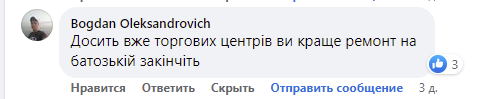 «Досить вже цих торгових центрів. Ви краще ремонт на Батозькій закінчить», — вважає Богдан Олександрович.